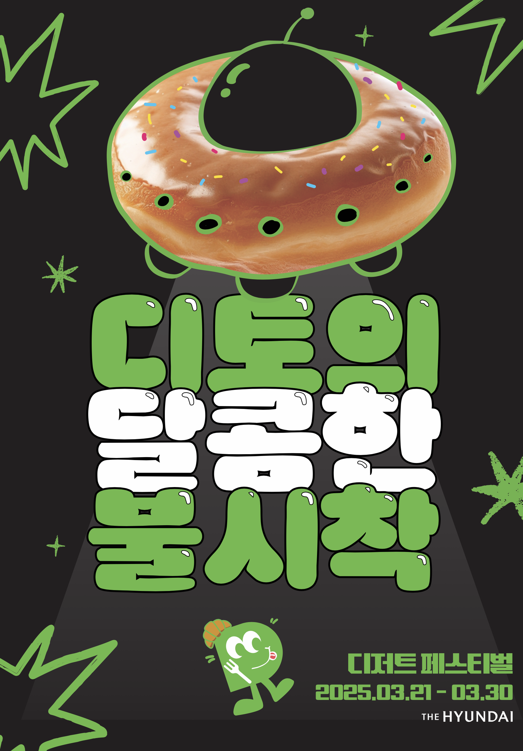 SNS 피드에 늘 빠짐없이 등장하던 요즘 ‘핫’한 디저트 브랜드를 이제는, 현대백화점에서도 만날 수 있게 되었습니다. 이번 시즌 디저트 MD 개편을 위해 팝업 및 트렌드 채널 ‘디토팝스’와 협업을 진행했다고 하는데요. 그렇게 탄생한 <디토 팝스 디저트 페스티벌>에서는 달콤함을 찾아 우주 속 디저트 행성을 떠돌던 외계인 디토가 현대백화점에 불시착해 행복을 퍼트린다고 합니다. 그 현장을 함께 살펴볼까요?