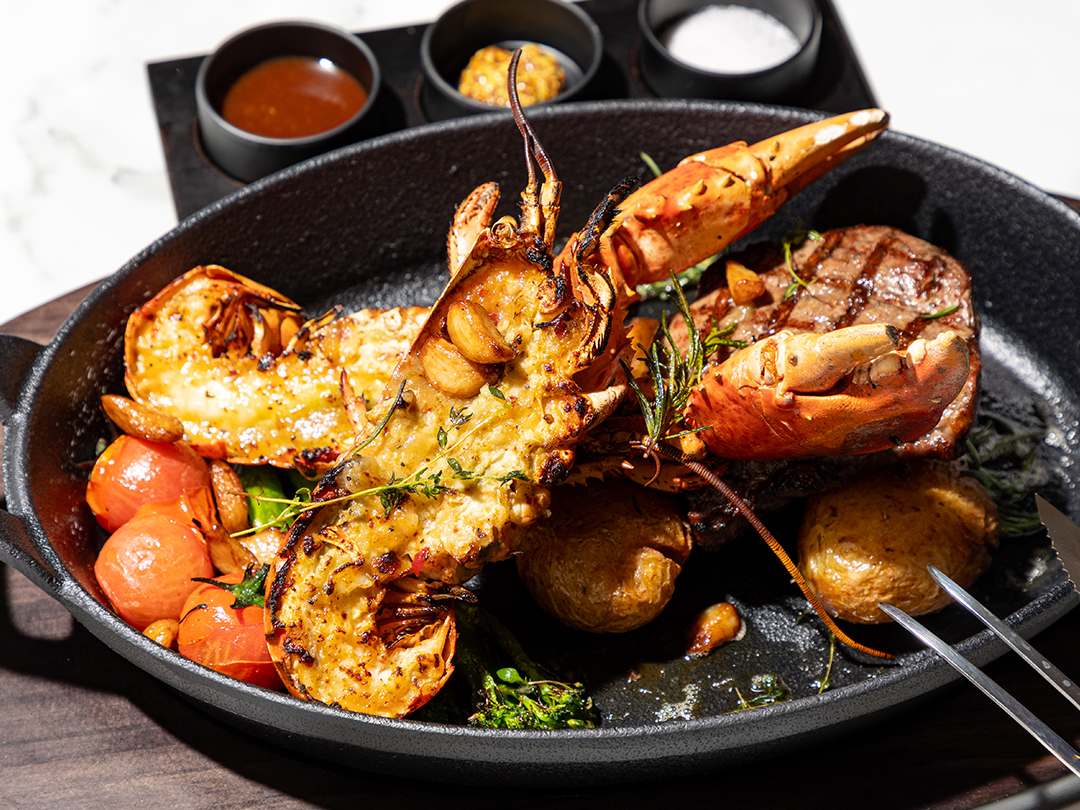 그릴에 구워 더 깊은 풍미를 자랑하는 랍스터와 최적의 마블링으로 입안에서 살살 녹는 식감의 채끝살은 함께 먹으면 그 맛이 두 배가 되죠.