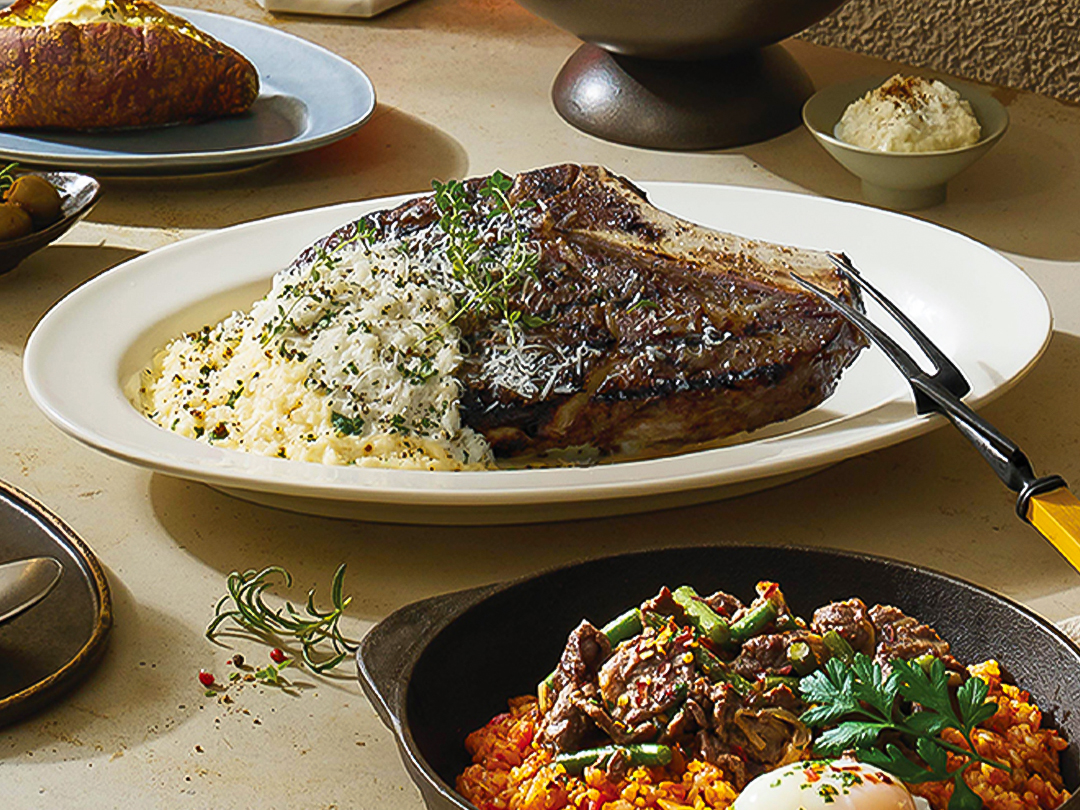 아웃백은 모든 메뉴가 맛있기로 유명하지만, 연말 모임에는 시그니처 메뉴인 토마호크 스테이크가 잘 어울려요. 새우살, 꽃등심, 늑간살을 모두 맛볼 수 있는 토마호크 스테이크는 230도의 핫플레이트에 제공되어 대화하며 느긋하게 즐겨도 음식이 쉽게 식지 않죠.