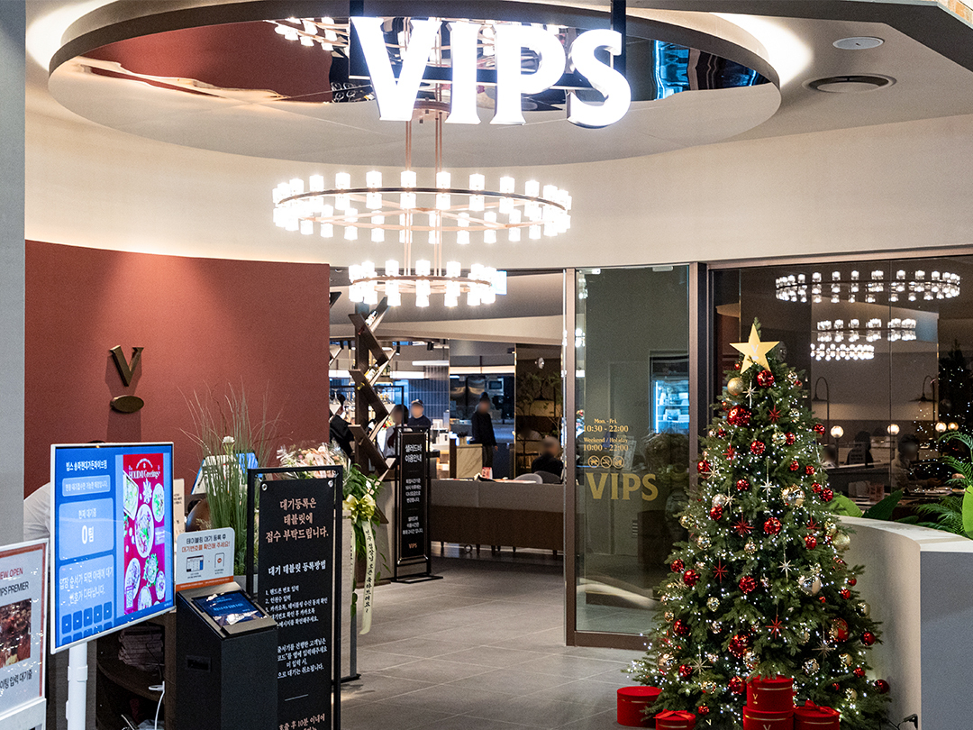 입구에서부터 크리스마스 분위기가 물씬 풍기는 VIPS 송파 현대 가든파이브점에서 연말 모임을 가질 계획이라면, VIPS 연간 이용권(5명)을 증정하는 인증샷 이벤트에도 꼭 참여해 보세요!