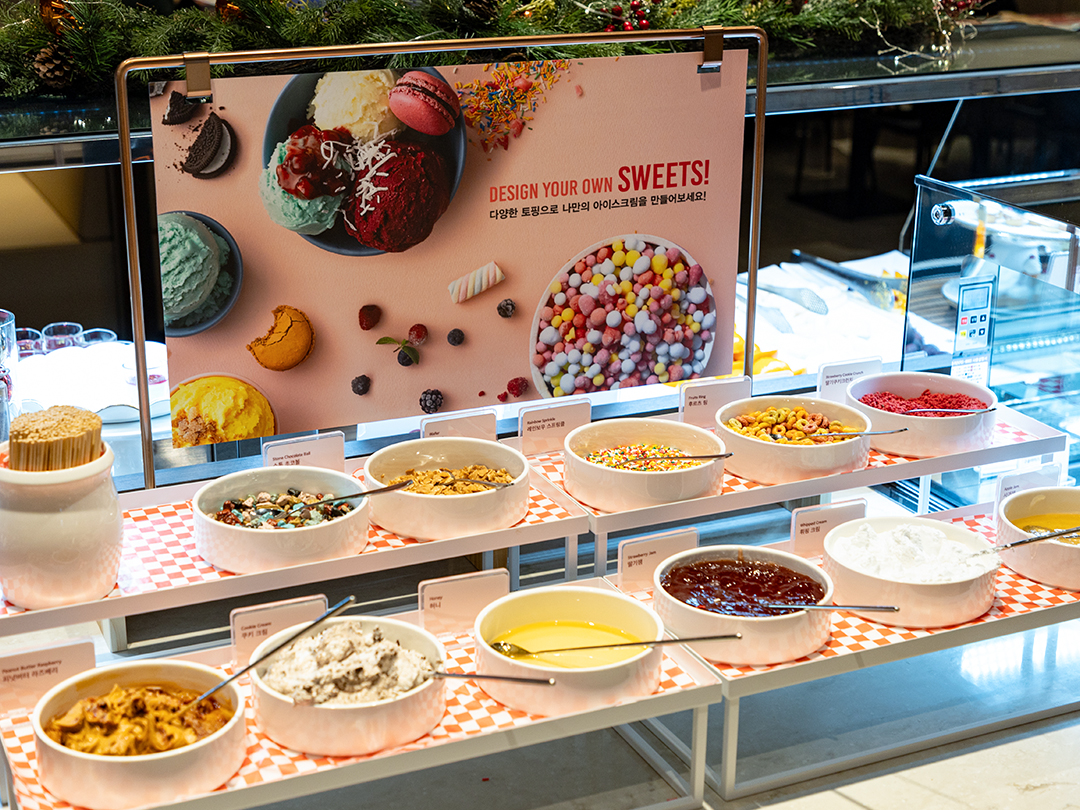 딸기 축제, 치즈 축제, 시푸드 축제, 갈릭 축제, 연어 축제 등 계절별, 주제별로 다채로운 음식을 맛볼 수 있는데요. 최근에는 샤인머스캣을 활용한 다양한 디저트를 내세운 샤인머스캣 축제 ‘더 샤이니 가든’으로 손님들의 사랑을 한 몸에 받았어요.