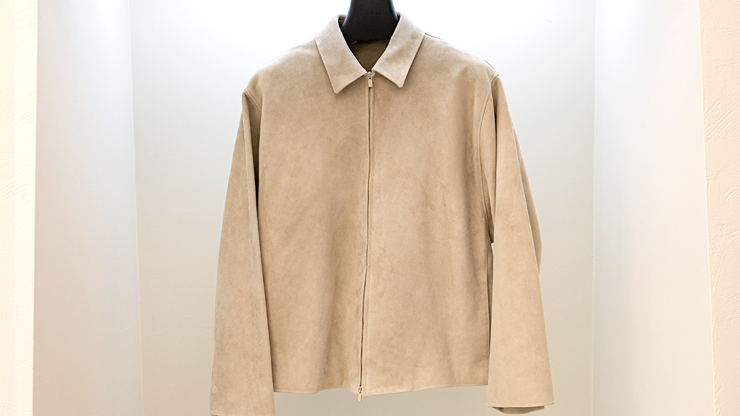 이탈리아 스웨이드로 제작되어 현대적인 고급스러움을 느낄 수 있습니다. 드롭 숄더 스타일에 힙라인으로 떨어지는 길이로, 여유로운 핏을 선호한다면 이 재킷을 추천합니다. 뒤쪽 칼라에 박음질 되어있는 ‘Fear of God’ 가죽 라벨도 포인트가 됩니다.