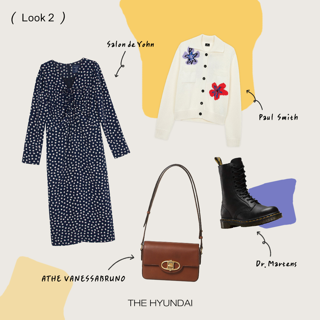 살롱드욘 ‘브이넥 셔링 미디 드레스’ 이 드레스는 영화 <미드나잇 인 파리>에서 과거와 현재가 공존하는 모습에서 영감받아 디자인되었어요. 잔잔하게 수놓아진 플라워 프린트가 인상적인 아이템인데요. 바스트 부분의 스트링으로 조절 가능한 포인트와 허리에 들어간 스트랩으로 슬림한 실루엣을 연출할 수 있습니다. 제품 바로가기
