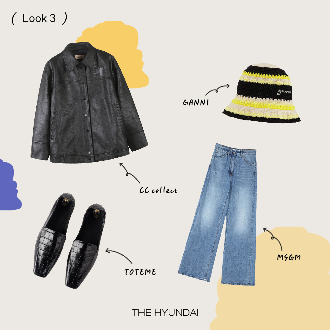씨씨콜렉트 ‘로고 자수 포인트 레더 재킷’ 레더 재킷은 시크의 상징과도 같습니다. 씨씨콜렉트는 심플한 버튼이 달려있는 셔츠 디자인의 재킷에 로고 자수로 포인트를 줬는데요. 오픈해서 크롭톱과 함께 매치하거나 데님, 워커와 함께 연출해보세요. 제품 바로가기