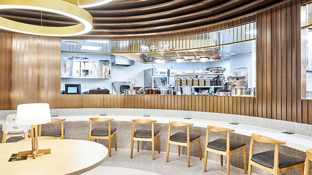 또한 기존 푸드코트의 ‘셀프 픽업’과 달리 주문한 음식을 직원들이 자리에 서빙해 주는 시스템으로, 직접 식사를 가지러 가야 하는 수고를 덜 수 있는데요. 주문 후 진동벨을 테이블 위 특정 공간에 올려두고 자리에서 식사가 준비되기를 편하게 기다리기만 하면 됩니다.