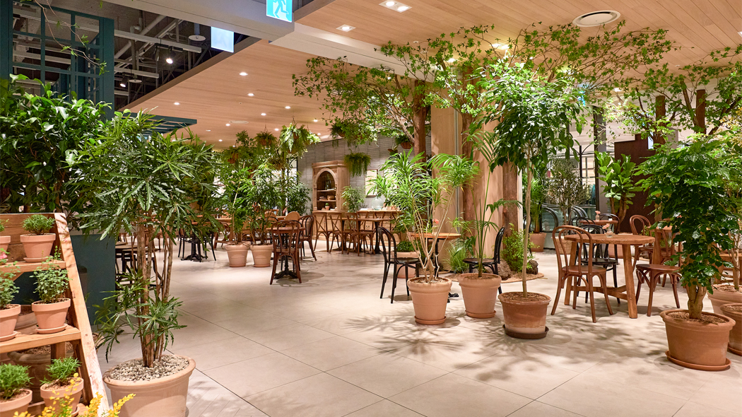 공간에 생명력을 불어넣고 활기를 더해주는 오브제로서, 꽃은 우리가 익숙하게 느끼던 공간도 색다르게 만드는 힘을 가지고 있습니다. 한남동에서 플라워 샵으로 시작해 플렌테리어 분야로 사업 범위를 확장하며 성장 중인 ‘화연당’은 그러한 꽃의 힘을 이용해 공간 분위기를 새롭게 연출하는데요. 이번 천호점의 해피니스 가든 또한 ‘화연당’과 함께 새로운 공간으로 탄생했습니다. 빈티지&러프 컨셉의 그리너리 공간으로 연출된 해피니스 가든은 눈길과 발길이 닿는 곳곳에서 ‘화연당’만의 감성이 담긴 플렌테리어를 만나볼 수 있습니다. 푸른 공간에 앉아 있기만 해도 편안해지는 기분을 느낄 수 있을 거예요.