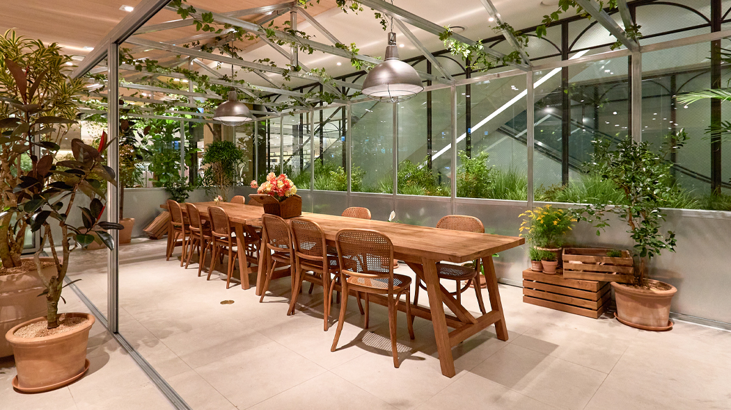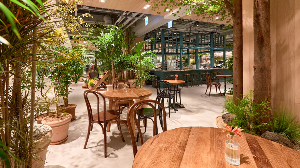 공간에 생명력을 불어넣고 활기를 더해주는 오브제로서, 꽃은 우리가 익숙하게 느끼던 공간도 색다르게 만드는 힘을 가지고 있습니다. 한남동에서 플라워 샵으로 시작해 플렌테리어 분야로 사업 범위를 확장하며 성장 중인 ‘화연당’은 그러한 꽃의 힘을 이용해 공간 분위기를 새롭게 연출하는데요. 이번 천호점의 해피니스 가든 또한 ‘화연당’과 함께 새로운 공간으로 탄생했습니다. 빈티지&러프 컨셉의 그리너리 공간으로 연출된 해피니스 가든은 눈길과 발길이 닿는 곳곳에서 ‘화연당’만의 감성이 담긴 플렌테리어를 만나볼 수 있습니다. 푸른 공간에 앉아 있기만 해도 편안해지는 기분을 느낄 수 있을 거예요.