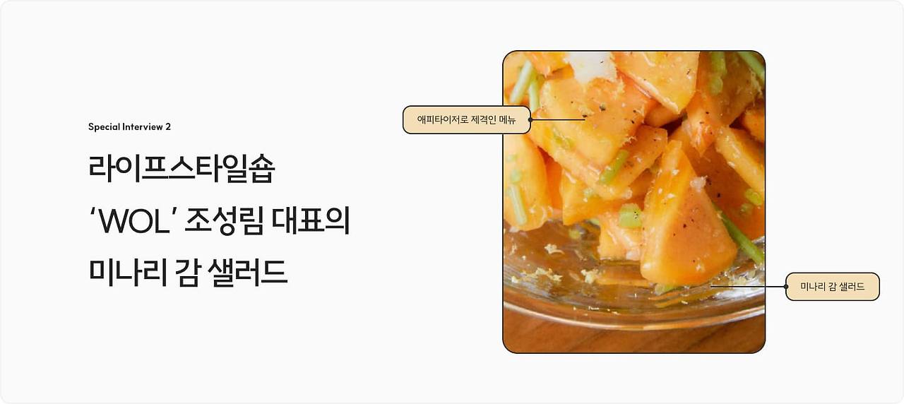 Q . ‘미나리 감 샐러드’를 만들게 된 계기는 무엇인가요?