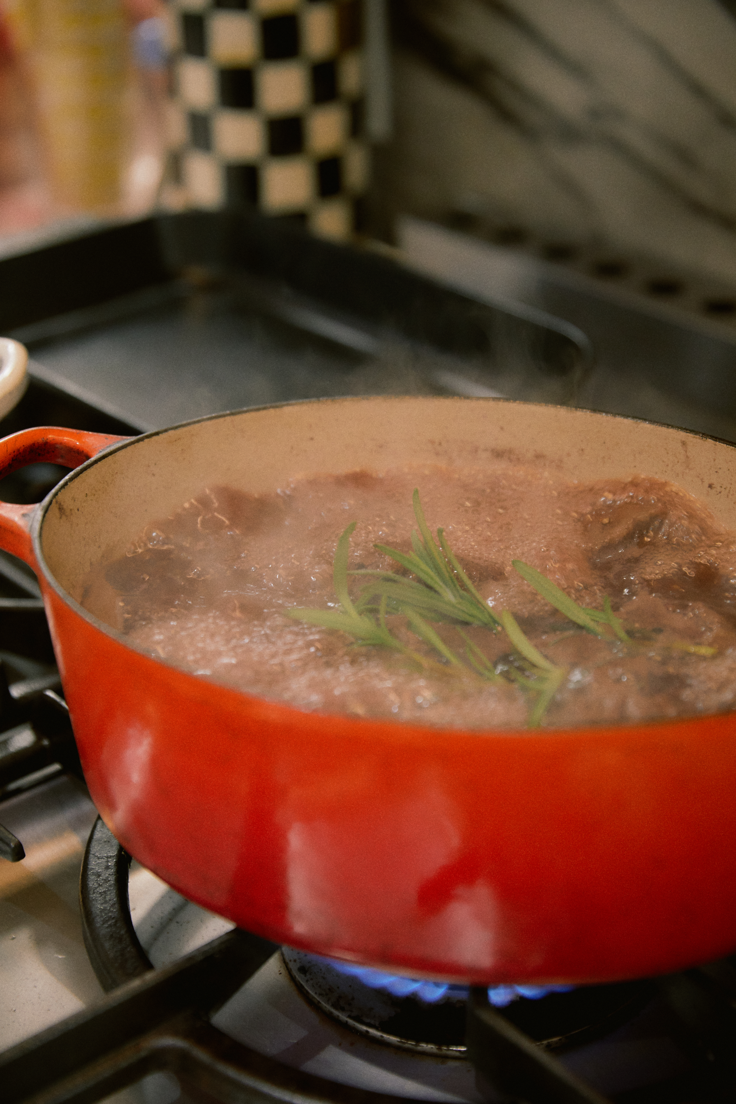 오븐을 사용한다는 점과 레드 와인을 넣는다는 점이 가장 큰 차이점이라고 할 수 있을 것 같습니다.