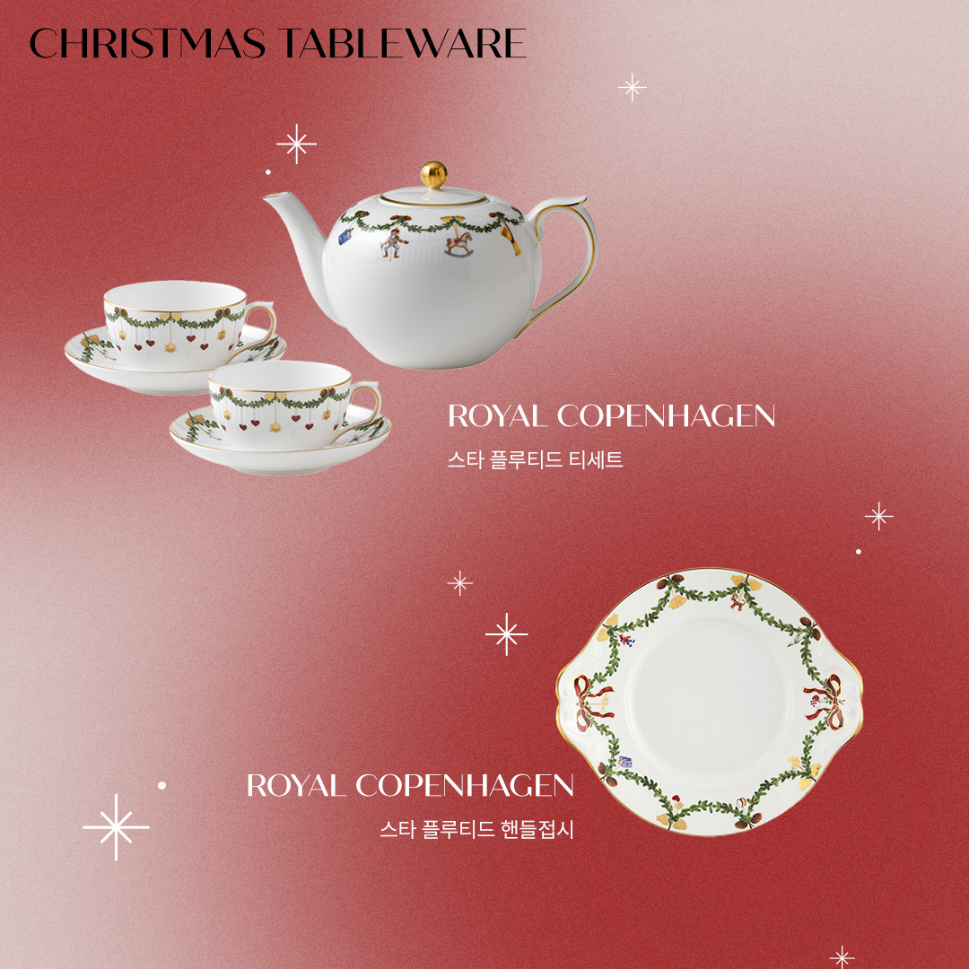 로얄코펜하겐 스타 플루티드 티세트 오랜 시간 세계 최고의 도자기 브랜드로서 자리매김하고 있는 로얄코펜하겐의 테이블웨어만큼 크리스마스를 기념하기에 좋은 건 없을 거예요. 이번 겨울 소중한 사람이 따뜻한 차 한 잔을 즐길 수 있도록 로얄코펜하겐의 스타 플루티드 티세트를 선물해 보세요. 제품 바로가기