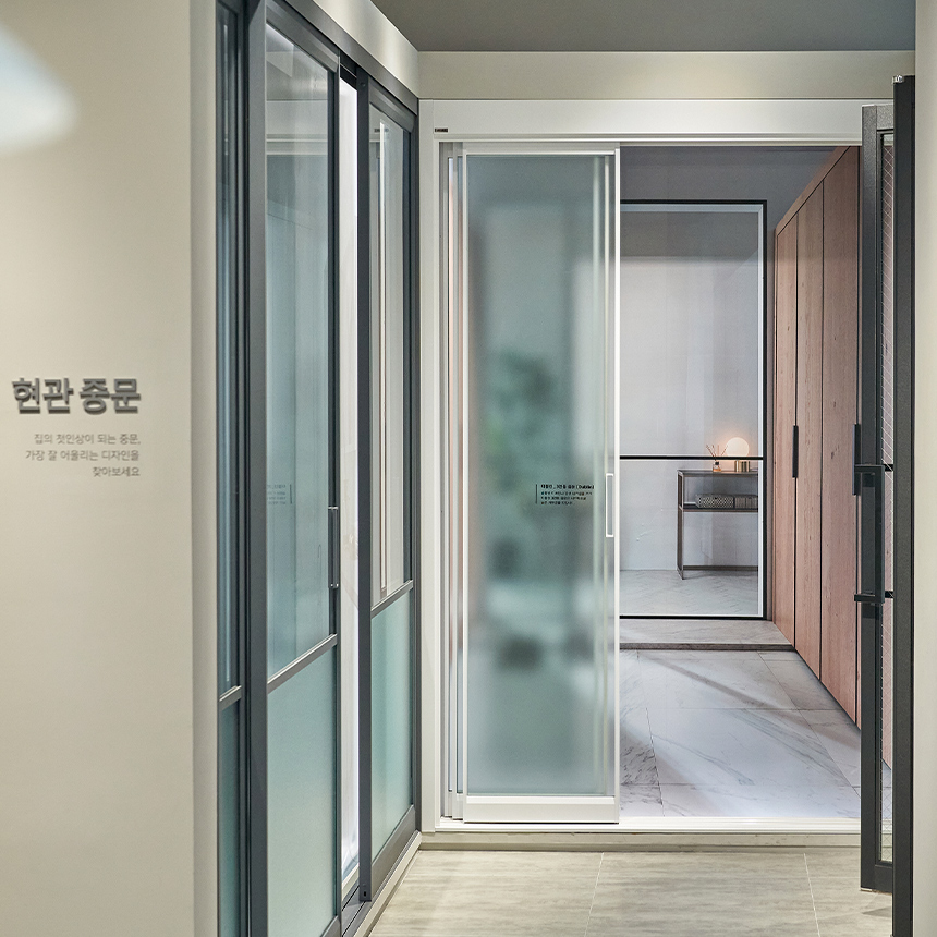 요즘 현관 인테리어의 대세는 중문, 현관존에서는 다양한 중문도 직접 볼 수 있는데요. 부드럽게 닫히고 수월하게 열리는 미닫이와 여닫이, 출입구를 최대한 넓게 쓰는 양개형과 공간을 아껴주는 3연동 중문까지, 리바트 중문은 우수한 단열효과와 소음 차단은 물론 집 전체에 고급스러움을 더해줍니다.