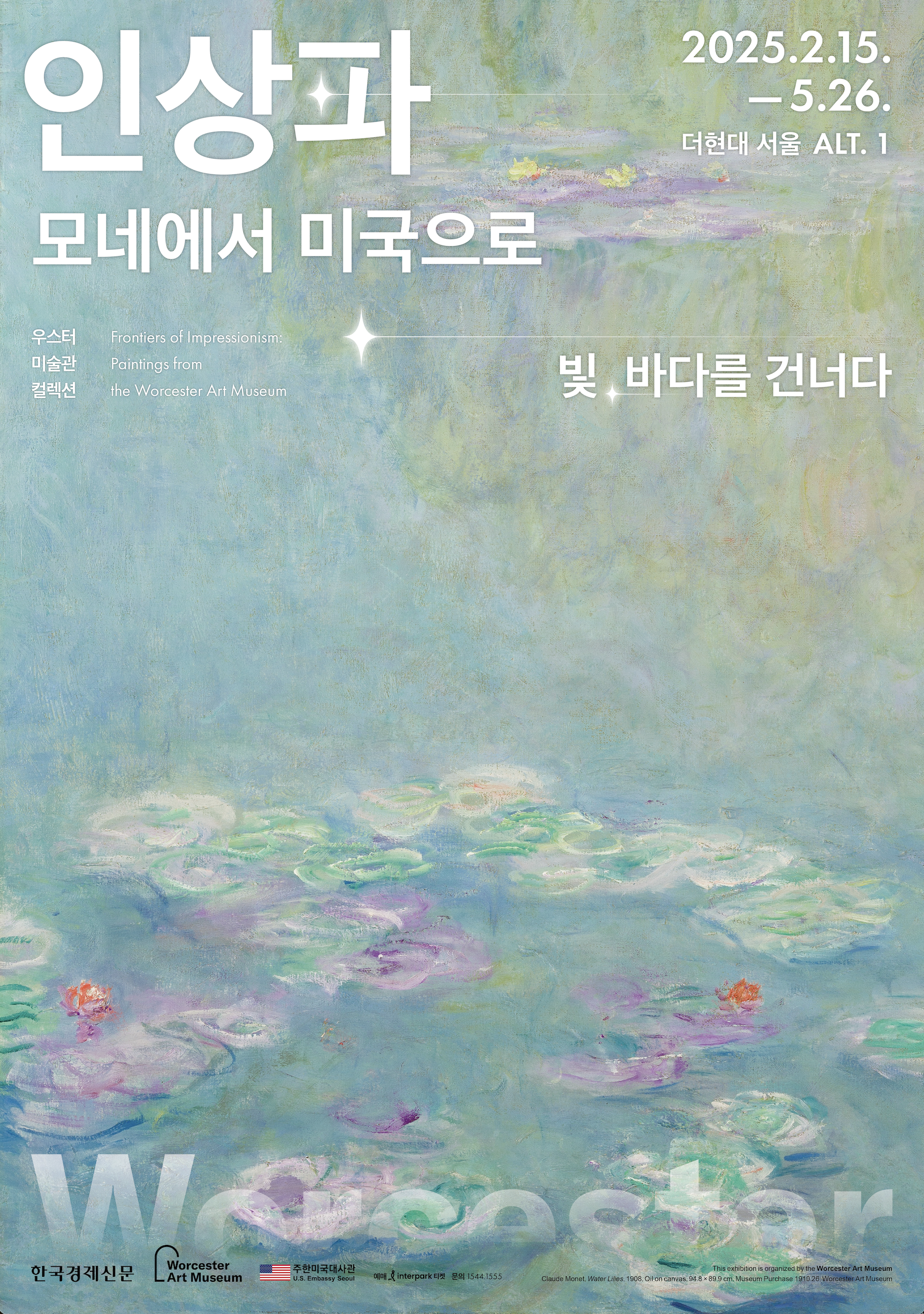 19세기 말 파리의 한 전시장에서 모네의 <인상, 해돋이>가 세상에 모습을 드러냈을 때 비평가들은 이를 '미완성된 낙서'라며 비웃었습니다. 하지만 역설적이게도 그들의 조롱조 비평에서 유래한 '인상주의'라는 이름은 현대 미술의 새로운 장을 여는 영예로운 명칭으로 남았죠. 오래전 모네가 수련 연작을 처음 선보였을 때의 충격은 2025년 더현대 서울 ALT.1에서 열린 <인상파, 모네에서 미국으로: 빛, 바다를 건너다>전의 감동으로 이어집니다. 이번 전시에서는 인상주의의 대가로 불리는 클로드 모네부터 피에르 오귀스트 르누아르, 메리 카사트의 작품에 이르기까지 우스터미술관의 방대한 소장품을 한자리에서 만나볼 수 있습니다. 유럽 인상주의의 재현이 아닌, 대서양을 건너 새로운 대륙에서 꽃피운 예술적 진화의 여정을 보여주는 뜻깊은 자리입니다.