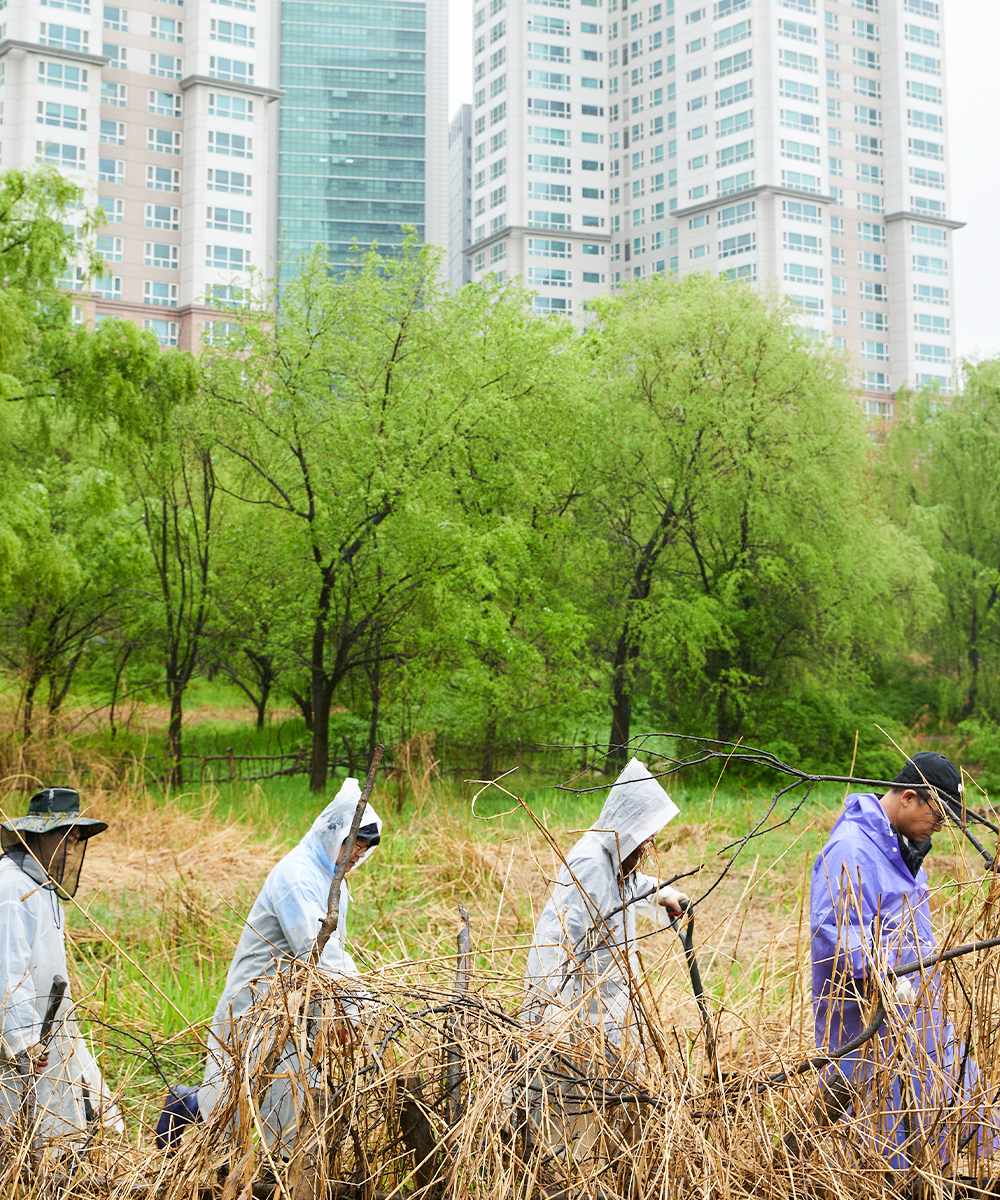 지난 2021년, 천연기념물 수달이 한강에 나타났다는 소식은 그래서 더욱 반가웠습니다. 생태계 최상위층인 수달의 생존은 곧 전반적인 생태계 건강과도 직결되니까요. 현대백화점의 ‘수달 캠페인’이 시작된 것도 그 즈음입니다. 플라스틱 업사이클 활동, 폐휴대폰을 활용한 금속 자원 재활용 등 다양한 친환경 캠페인으로 수달의 서식지 보전을 지원해 왔어요. 이번 봉사활동도 그 일환인데요. 현대백화점 동료들이 직접 몸으로 실천했다는 점에서 더욱 의미 깊은 서식지 보존 활동, 그 현장을 생생하게 담았습니다!