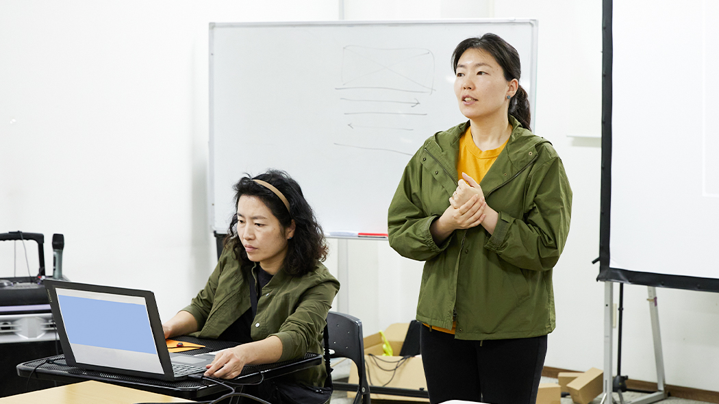 아침부터 세차게 쏟아진 비에 22명의 참여자 모두 실내로 모였습니다. 다행히 오후부터는 조금씩 날이 갠다는 소식이 전해졌는데요. 원래 계획되었던 실외 활동을 오후로 변경한 후, 실내에서 오전 활동이 시작되었습니다. 우선 이번 활동을 함께 기획한 현대백화점 김경수 책임과 1세대 업사이클 기업 ‘터치포굿’으로부터 자세한 기획 의도를 들으며 그 의미를 되새겨 보았어요.