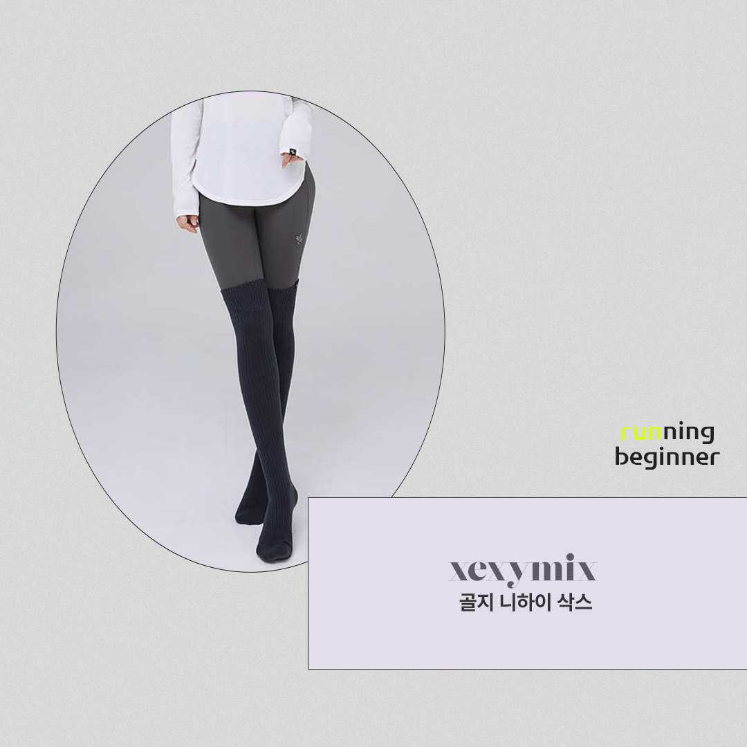 기온이 아찔하게 내려간 날, 러닝을 쉬고 싶지 않을 때는 레깅스 패션을 좀 더 따뜻하게 연출해보세요. 젝시믹스의 골지 니하이 삭스를 매치하면 무릎 위까지 안정적인 서포트를 받는 느낌입니다. 보온성과 더불어 무릎 부위를 안전하게 보호받는 기분이죠. 힘차게 달려나가도 흘러 내려가지 않아서 편안하게 착용할 수 있습니다. 제품 바로가기