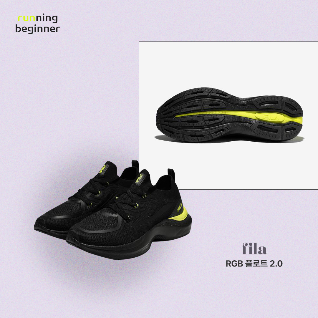 두께감 있는 아웃솔과 사이드에 들어간 휠라의 시그니처 패턴이 포인트가 되어주는 휠라의 러닝화도 있습니다. 블랙 컬러 디자인이지만 네온 컬러 디테일이 들어가 있어 베이직한 러닝룩에 포인트가 되어줄 거예요. 가벼운 엔지니어드 메쉬와 미드솔의 무게를 한층 다운시켜 경량성이 굉장히 뛰어납니다. 제품 바로가기