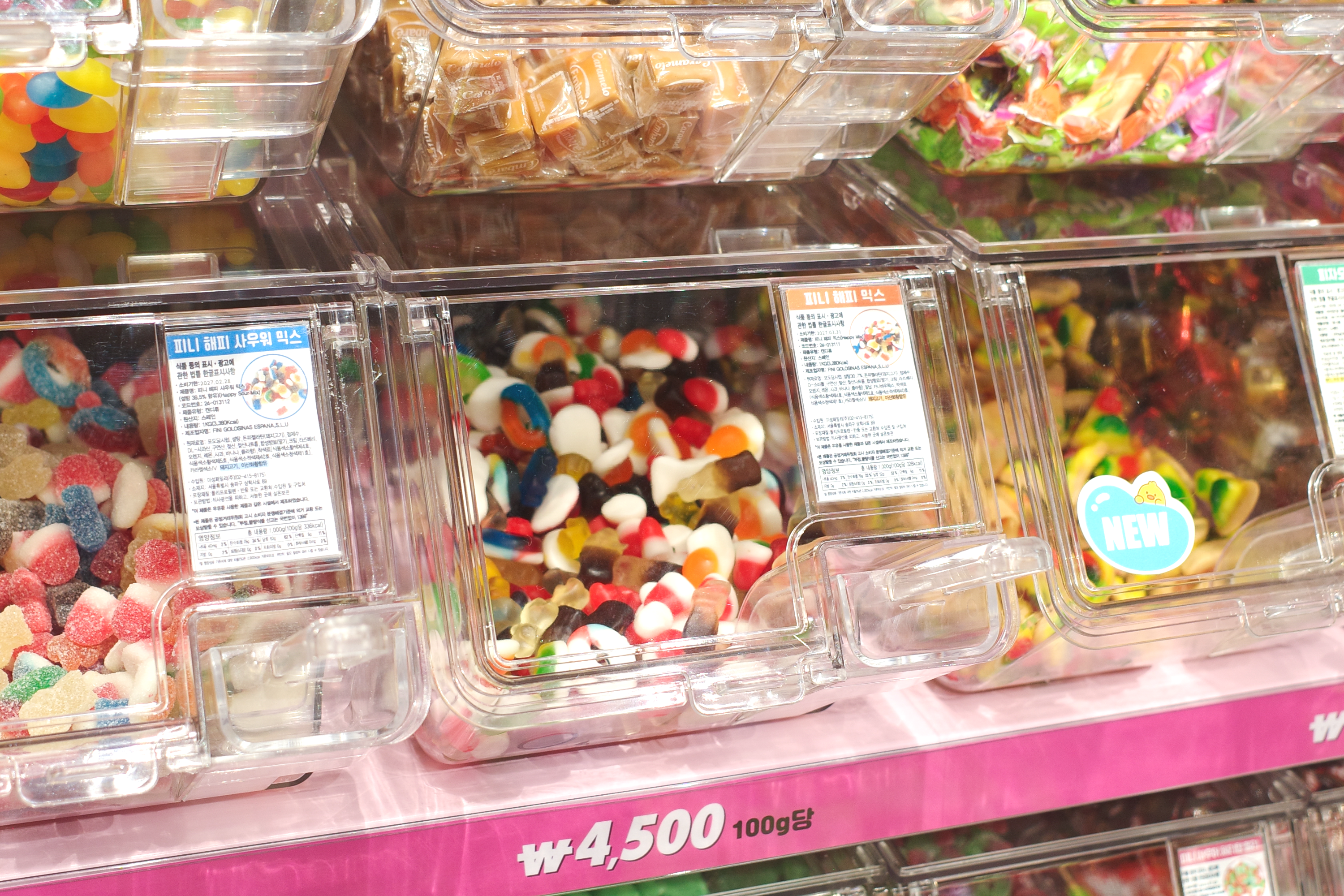 케이팝 외에도 <오징어 게임> 같은 K-드라마 관련 굿즈나 한국의 매력을 듬뿍 담은 각종 아이템을 만나볼 수 있어요. 핑크색 바구니를 하나 집어 들고서 달달한 허니버터아몬드와 서울 로고가 새겨진 볼캡, 내친김에 인형 키링까지 꽉꽉 눌러 담아봅니다. 한국 문화에 관심 있는 해외 친구들을 위한 선물로도 제격이죠?