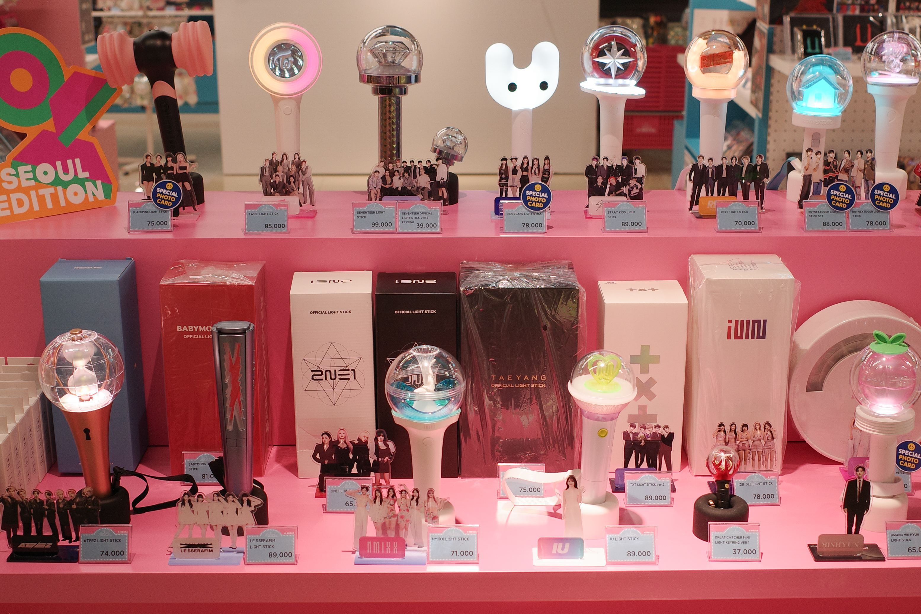 서울 에디션 플레이리스트에서 케이팝의 과거를 경험했다면 이제 케이팝의 현재를 즐길 차례입니다. 케이팝의 메카를 표방하는 ‘K-MECCA’로 걸음을 옮겨볼까요? 세계로 뻗어나가는 케이팝 아이돌의 공식 응원봉이 핑크색 진열대 위에서 시선을 잡아끄네요. 세븐틴의 캐럿봉, NJZ의 빙키봉, 아이유의 아이크 등 개성 넘치는 아티스트별 응원봉이 모여 있어서 콘서트에 참석 예정인 분들은 하나쯤 구매해도 좋겠어요.