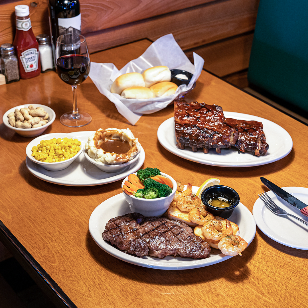 텍사스로드하우스에서는 스테이크, 치킨, 립, 버거, 샐러드 등 70여 종의 다양한 메뉴를 선보이고 있는데요. 뼈가 붙어있는 꽃등심과 촉촉한 새우를 맛볼 수 있는 립아이 스테이크 콤보 & 그릴드 쉬림프, 특별한 시즈닝과 BBQ 소스가 어우러지는 어워드 위닝 립이 이중에서도 가장 인기 있는 스테디셀러 메뉴입니다. 메인 메뉴를 주문하면 구운 감자, 고구마 마시멜로우, 모듬 야채 등 사이드 메뉴도 함께 제공되어 속과 마음 모두 든든한 한 끼가 가능하죠.