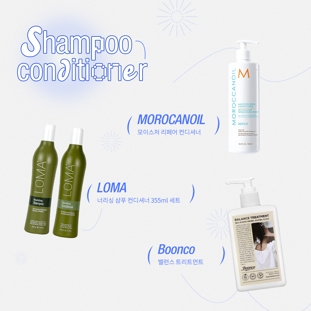 07 모로칸오일 모이스처 리페어 컨디셔너 촘촘하고 힘 있는 모발로 가꿔주는 컨디셔너도 하나 구비해두세요. 모로칸오일의 이 컨디셔너는 아르간 오일과 아보카도 오일, 식물성 추출물이 함유돼 수분 밸런스와 탄력 회복에 효과적입니다.