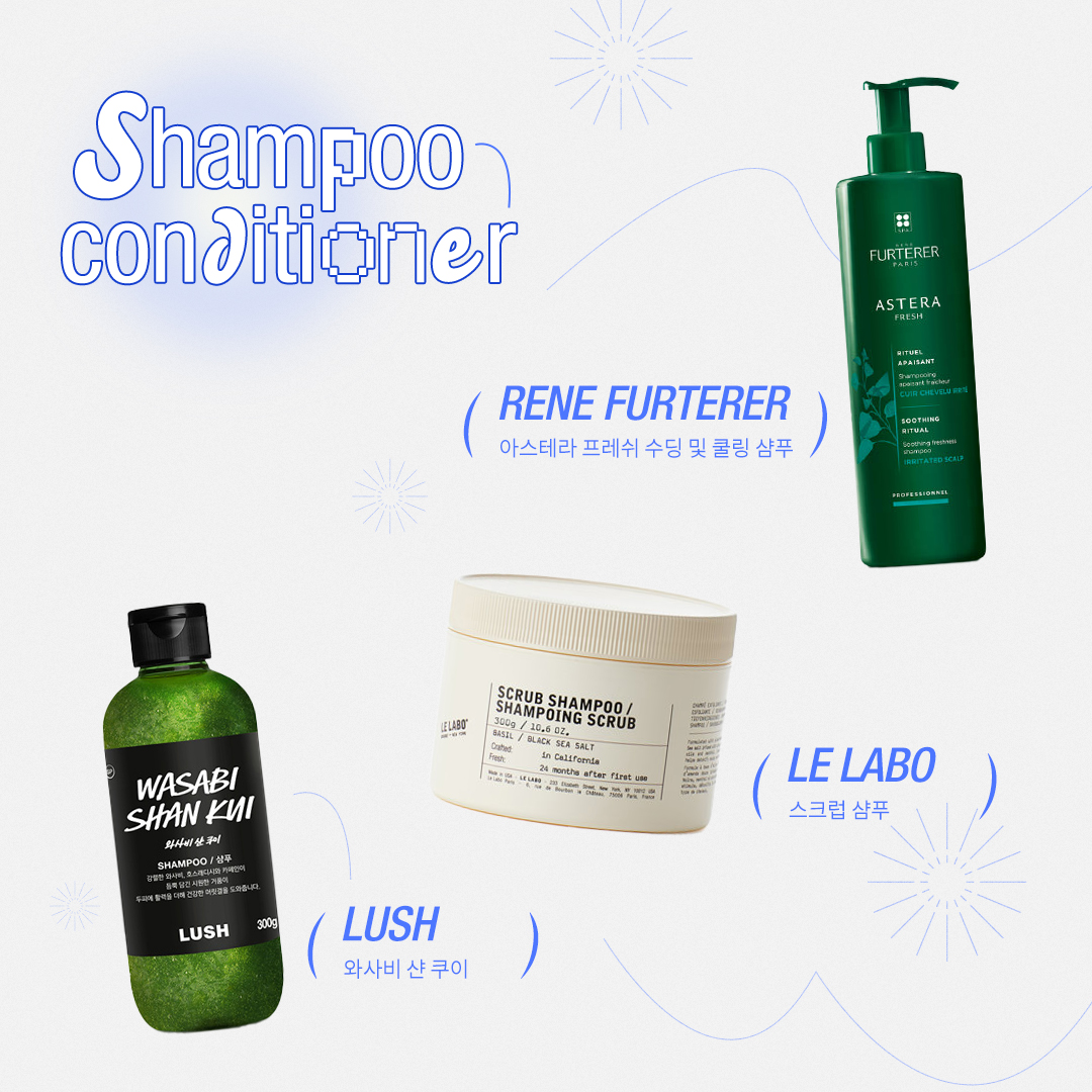 03 러쉬 와사비 샨 쿠이 이름부터 시원함이 느껴지는 이 샴푸는 건강하고 촉촉한 머릿결과 함께 짜릿한 쿨링 효과를 주는 제품이에요. 고추냉이 뿌리 추출물이 산뜻한 클렌징을 도와주고, 씨솔트가 두피를 부드럽고 촉촉하게 만들어 주죠.