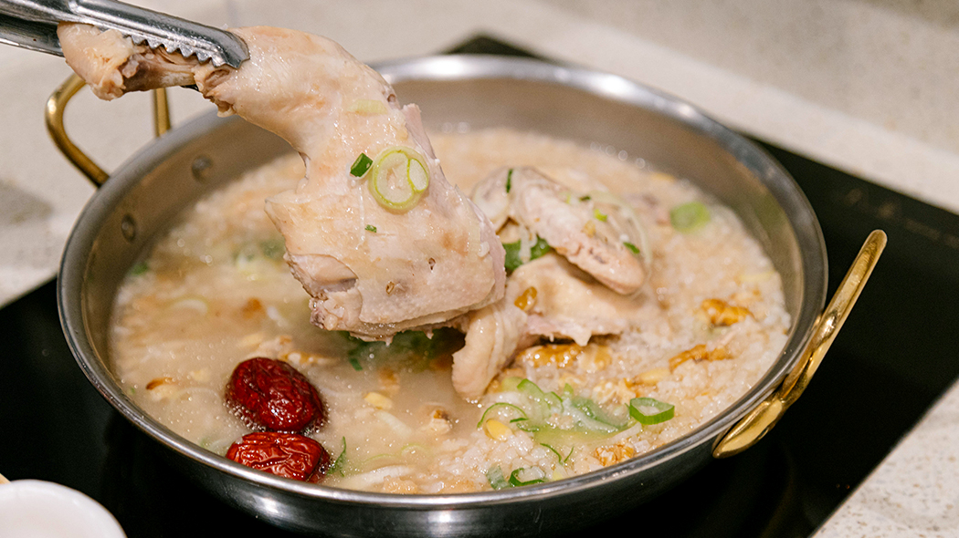 여름을 대표하는 보양식은 뭐니 뭐니 해도 삼계탕이죠. 닭과 인삼, 대추, 생강, 마늘 같은 재료를 듬뿍 넣어 푹 고아 만드는 만큼 기력을 보충하기에 제격인데요. 현대백화점 디큐브시티에는 진하게 우려진 닭 육수에 잘 익은 닭 반 마리와 부드러운 찹쌀, 고소한 견과류까지 들어간 누룽지 반계탕을 먹을 수 있는 계백집이 있습니다. 혼밥족들을 위한 1인 핫플레이트 테이블이 많아 혼자서도 맛있는 누룽지 반계탕을 즐길 수 있답니다.