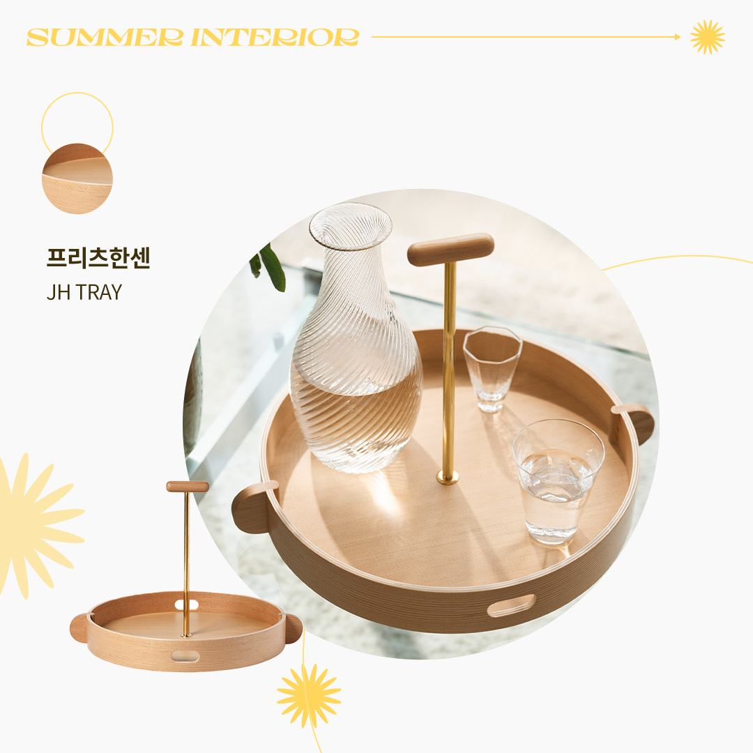 오레곤 파인 소재의 트레이는 여름 분위기를 더해주는 것은 물론, 활용도도 뛰어난 제품입니다. 컵 등을 정리하는 수납공간이나 다양한 오브제를 배치하는 인테리어 소품으로 사용할 수 있는데요. 탑 핸들이 더해진 독특한 디자인은 그 자체로도 훌륭한 인테리어 장식품이 되어줍니다. 트레이 제품 바로가기