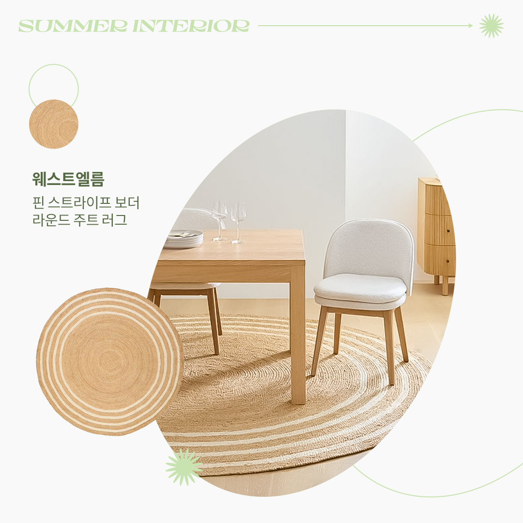 다가오고 있는 무더운 여름을 대비해 바라보기만 해도 시원해지는 여름 인테리어를 살펴보았는데요. 여름을 맞이해 가볍고 시원한 느낌으로 분위기 전환을 해보고 싶다면 몇 가지 아이템으로 쉽고 편하게 여름의 순간을 우리 집에 담아보세요.