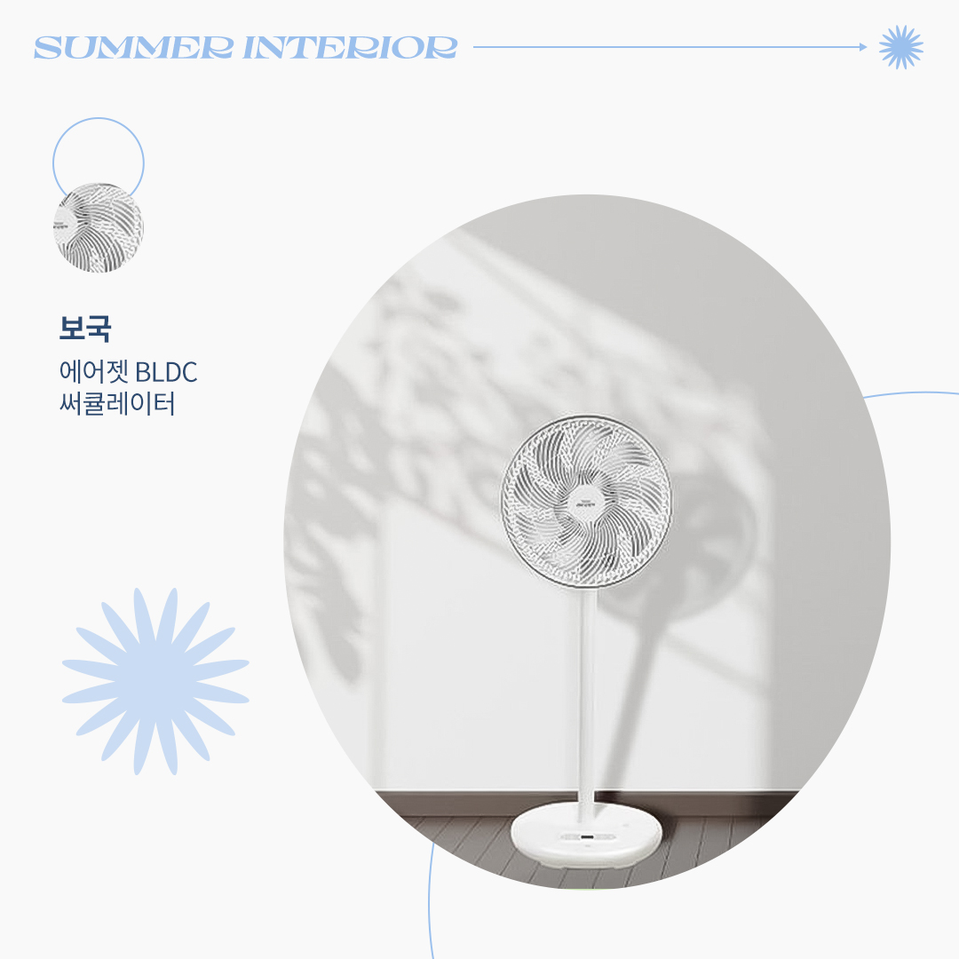 집안 전체를 쾌적하고 시원하게 만들어 주는 써큘레이터는 여름을 대비하는 필수 가전인데요. 강력하지만 조용하게 바람을 내보내 하루 종일 쾌적하게 생활할 수 있도록 만들어 주는 이 써큘레이터는 깔끔한 디자인으로 어느 곳에도 잘 어울리며 활용도가 높습니다. 보국의 써큘레이터로 공간의 스타일도 살리면서 시원하게 여름을 맞이해 보세요! 써큘레이터 제품 바로가기
