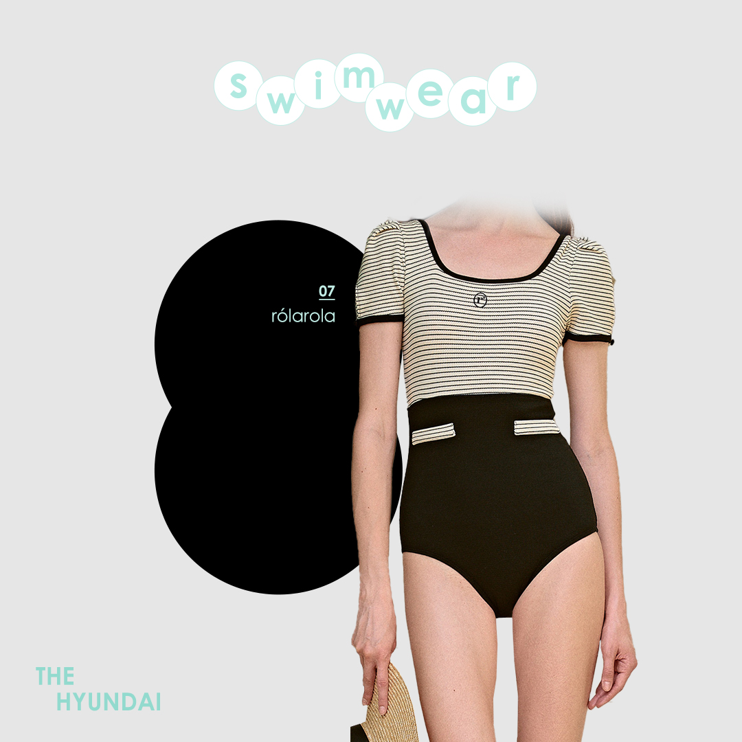 귀여운 매력을 강조하고 싶다면 로라로라에서 답을 얻을 수 있습니다. 부드러운 니트 소재를 사용해 착용감이 보드라운 이 수영복은 스트라이프가 포인트로 들어간 아이템인데요. 허리선을 높인 하이웨스트 디자인이라 다리가 한층 길어 보입니다. 전면의 자수 로고 역시 사랑스러운 느낌을 연출해주고 있네요.
