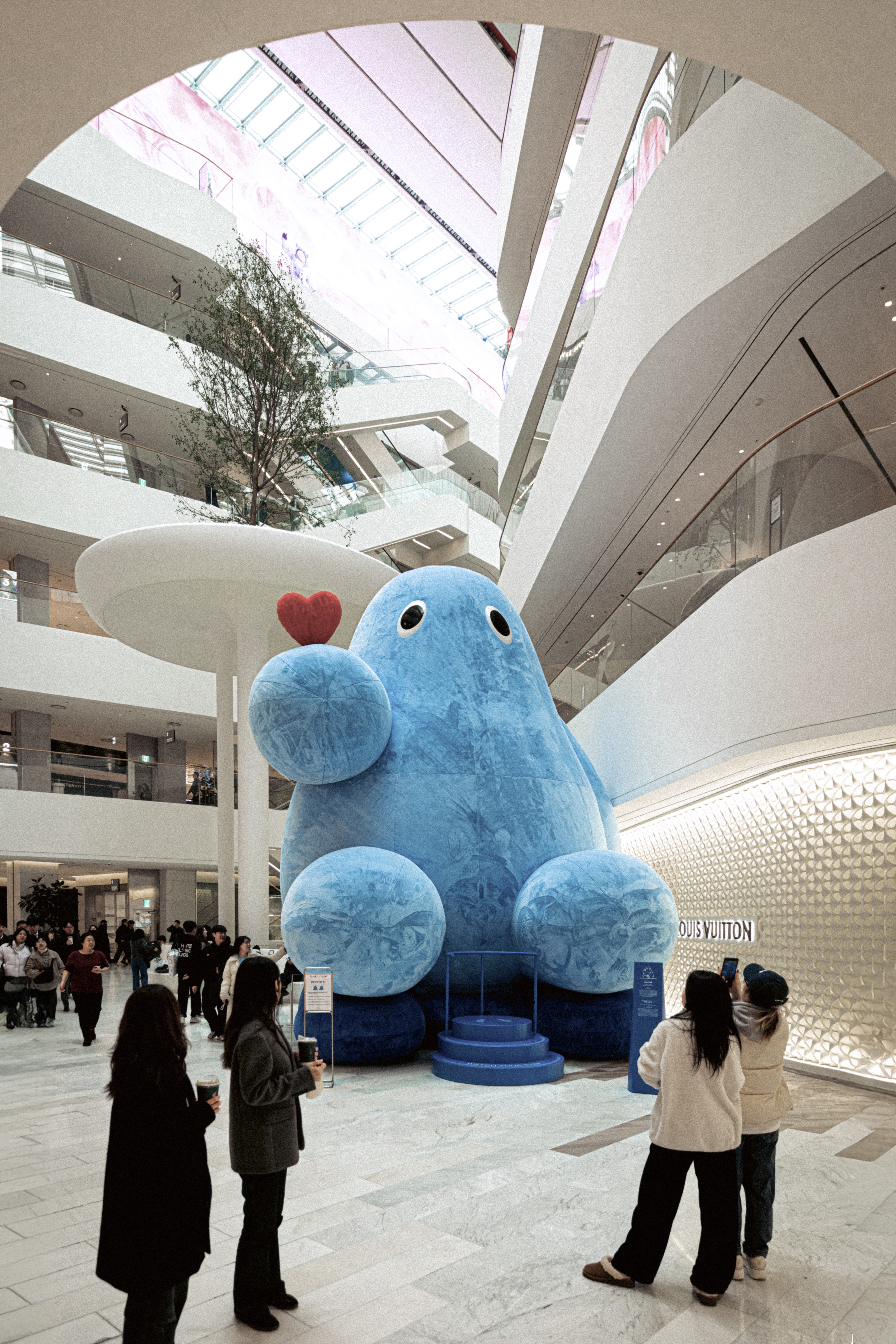 항상 평면 속에 존재하던 예티의 털을 현실에서 구현하는 것은 에디 강 작가에게도 새로운 도전이었습니다. 작가와 마음스튜디오는 다양한 종류의 털을 직접 만져보고, 길이를 길게도 짧게도 조정해 보았습니다. 그 결과 백화점을 오가는 많은 고객들에게 포근함을 전하면서도 안전을 위한 방염기준을 충족하는 촉감과 질감으로 완성됐죠. 더현대 서울에서 예티를 만난다면 LED 하트가 켜지는 순간을 경험한 후, 꼭 털의 촉감까지 직접 느껴보세요. 어느새 작가의 상상 속 친구가 내 친구가 되어 있음을 깨닫게 될 테니까요.
