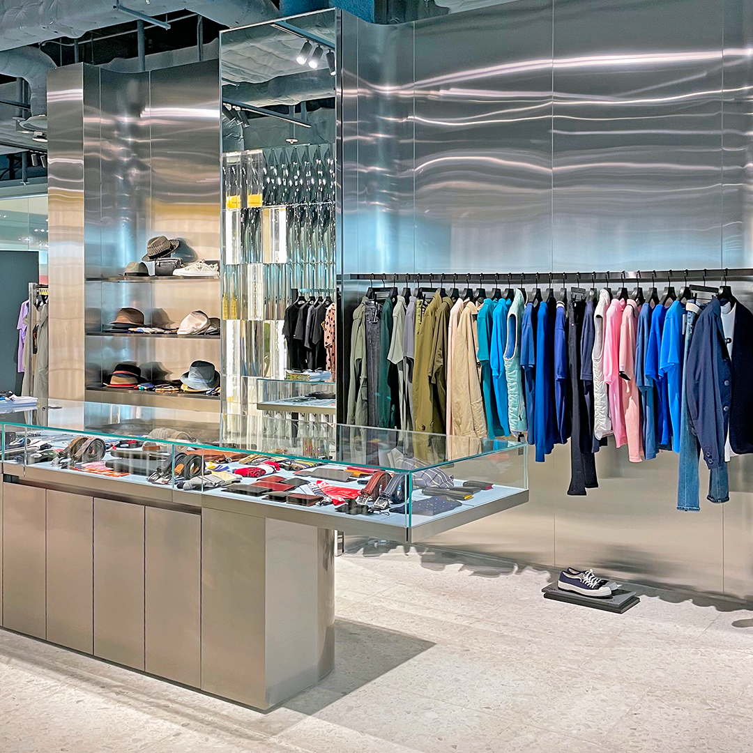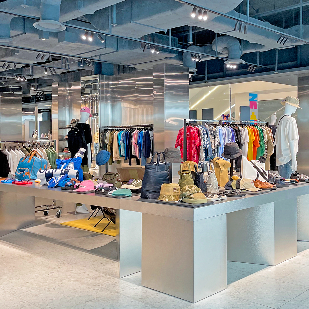 ‘폼 플래그십’의 또 다른 입구의 메인 공간은 다양한 패션 제안으로 가득한 남성 의류 브랜드들이 차지하고 있습니다. 다양한 텍스처를 조합한 패치 워크가 특징인 데님 브랜드 FDMTL, 클래식과 캐주얼한 디자인을 컨템퍼러리 스타일로 재해석하는 핸드메이드 브랜드 스테파노 마노(STEFANO MANO), 브리티시 헤리티지를 150년의 역사로 담아내는 영국 브랜드 선스펠(SUNSPEL) 등으로 매너를 완성시켜 주는 패션을 준비해보세요.