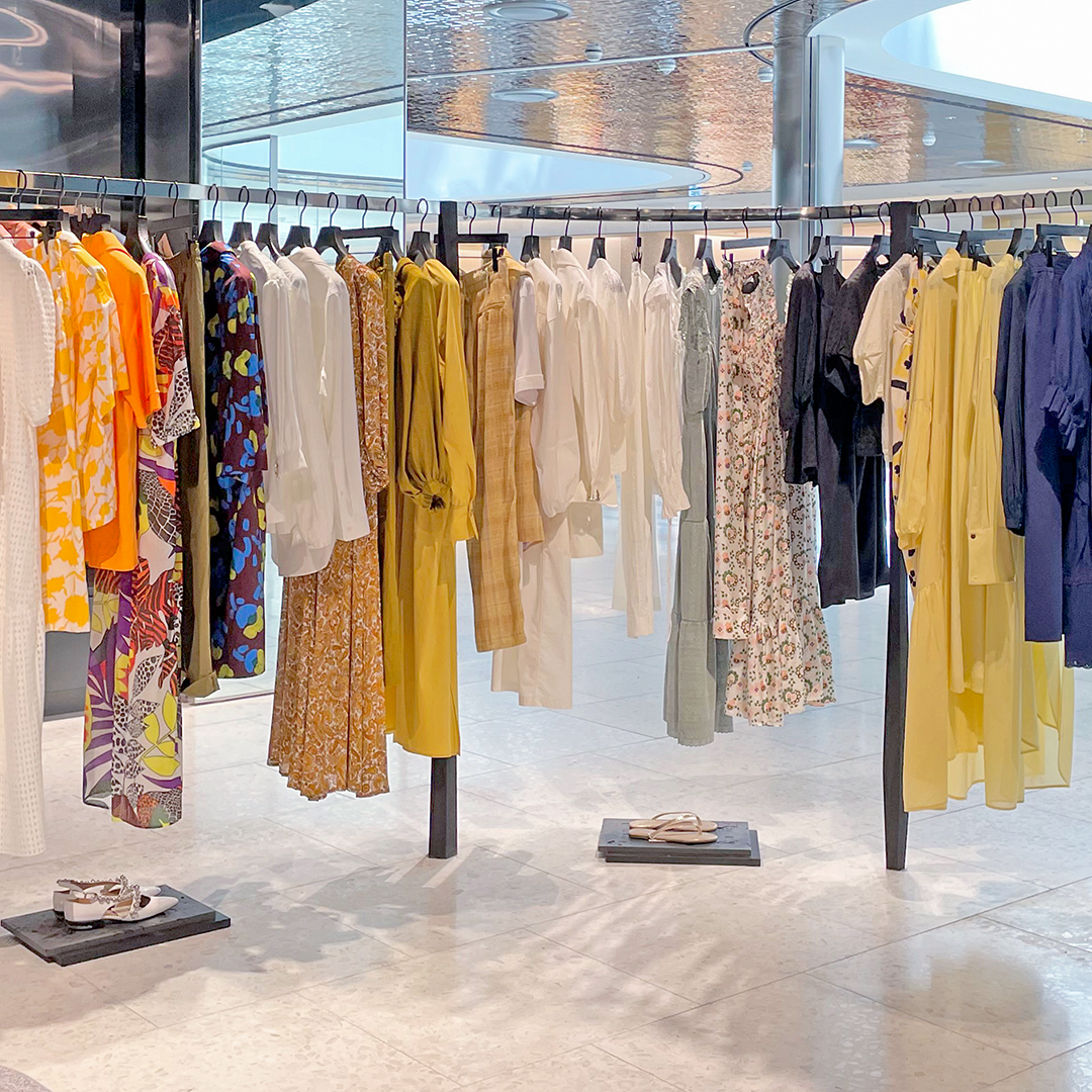 ‘폼 플래그십’의 입구부터 우아하고 세련된 폼의 정체성을 잘 보여주는 대표 디자이너 브랜드들이 눈에 뜨입니다. 착용하면 옷이 몸을 자연스럽게 감싸는 듯한 편안한 옷을 추구하는 엔폴드(ENFOLD), 과감한 컬러와 구조적 라인, 우아한 실루엣으로 웨어러블한 디자인을 선보이는 레지나 표 (REJINA PYO), 현대적이고 낭만적인 컬렉션으로 짧은 시간에 유럽에서 큰 관심을 끌고 있는 이탈리아 패션 브랜드 에리카 카발리니(ERIKA CAVALLINI) 등 모두 성숙하면서도 고급스러움이 자연스럽게 묻어납니다.