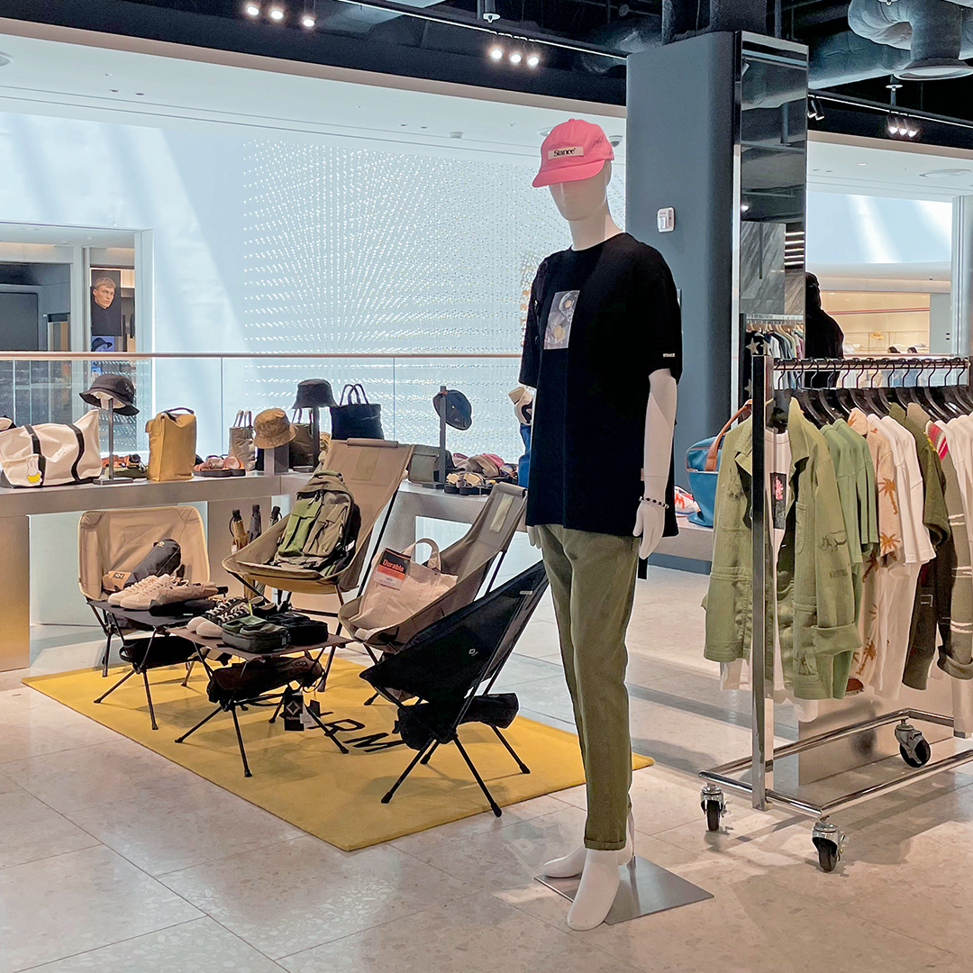 ‘폼 플래그십’의 또 다른 입구의 메인 공간은 다양한 패션 제안으로 가득한 남성 의류 브랜드들이 차지하고 있습니다. 다양한 텍스처를 조합한 패치 워크가 특징인 데님 브랜드 FDMTL, 클래식과 캐주얼한 디자인을 컨템퍼러리 스타일로 재해석하는 핸드메이드 브랜드 스테파노 마노(STEFANO MANO), 브리티시 헤리티지를 150년의 역사로 담아내는 영국 브랜드 선스펠(SUNSPEL) 등으로 매너를 완성시켜 주는 패션을 준비해보세요.