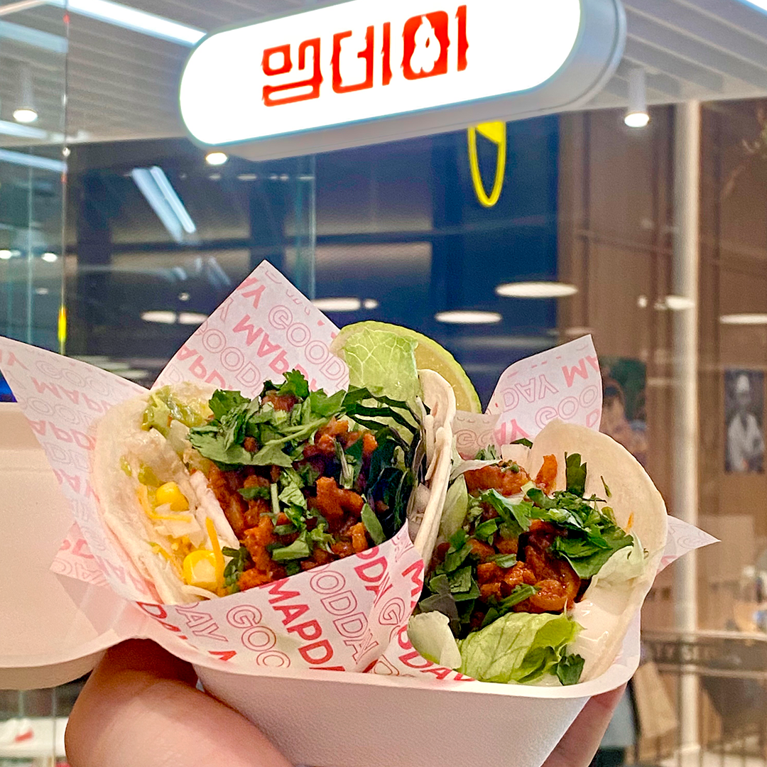 ‘맵데이’가 더현대 서울에? 강남에서 배달 맛집으로 유명한 ‘맵데이’를 지금 B1 ‘Tasty Seoul’에서 만날 수 있는데요. 좋은 콘텐츠를 가진 다양한 소규모 브랜드를 지원하고자 만들어진 실험적인 오프라인 팝업 공간인 ‘1 by WECOOK’의 첫 번째 주인공이 바로 이곳입니다. ‘1 by WECOOK’은 푸드 스타트업을 육성할 수 있는 상생모델임과 동시에, 온라인이 일상이 되어가는 시기에 오프라인에서만 느낄 수 있는 고객 경험과 체험을 강화한 공간인데요. 단순 상품 판매를 넘어 오직 하나의 스토리, 하나의 브랜드만을 온전히 경험하는 것에 초점을 맞추고 있다는 것이 특징입니다. 첫 번째로 찾아온 ‘맵데이’가 지금 입 안에 천불 나는 매운맛으로 맵덕들을 집결시키고 있는데요. 매운맛 하면 떠오르는 닭발, 막창, 불닭, 닭똥집 등을 타코 메뉴로 개발한 조합도 신(辛)박하죠?