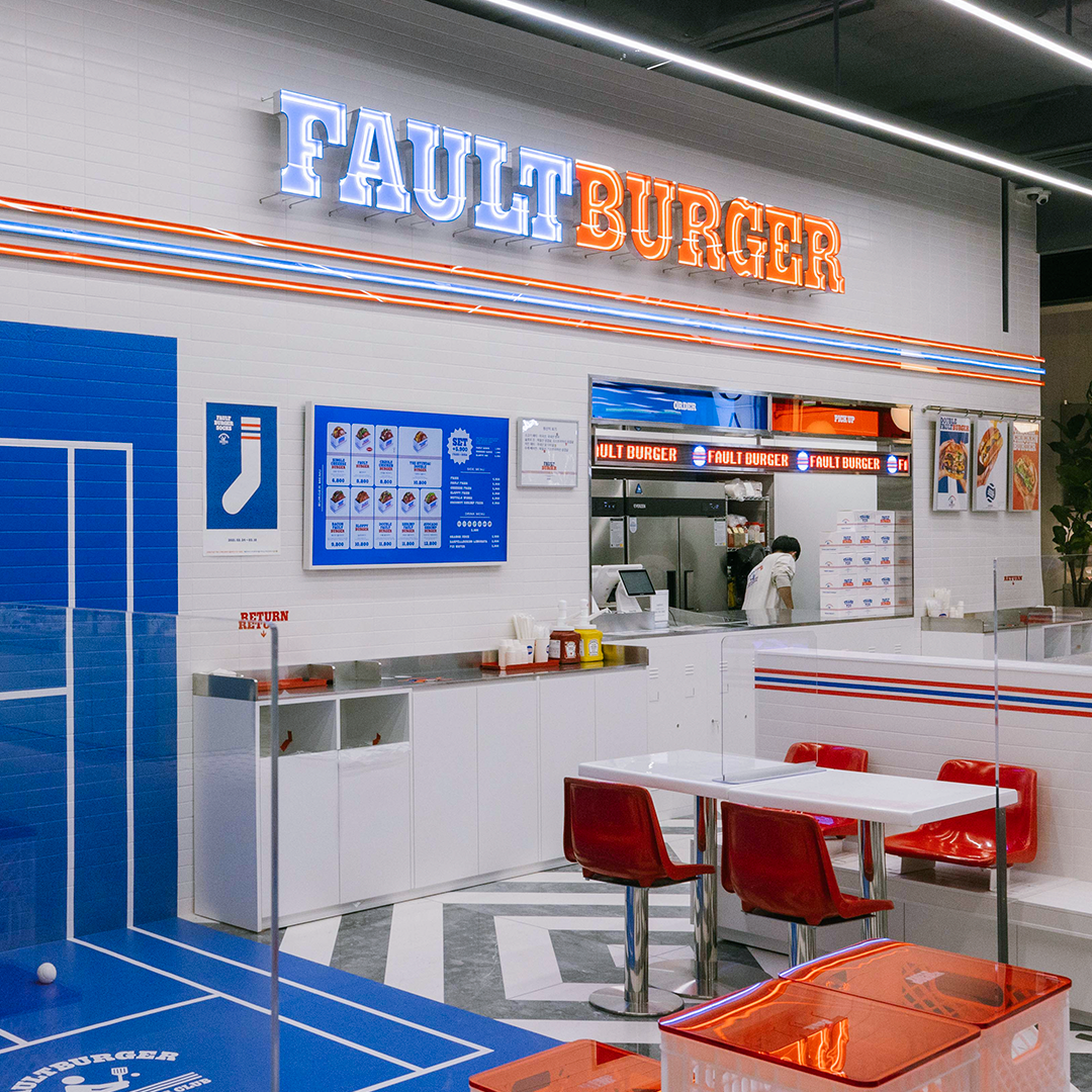 도산공원의 핫한 수제 버거 맛집인 ‘폴트 버거’가 처음으로 백화점에 입점했습니다. 압구정동에서 론칭한 이후 신선하게 구운 번과 두툼한 소고기 패티로 빠르게 이름을 알렸죠. 버거에 진심임을 보여주듯 버거 종류만 9가지에 프라이즈도 4가지로 다양합니다. 여기에 버팔로 윙즈까지 곁들이면 버거 종주국 미국 스타일이 완성돼요. 미각을 즐겁게 해주는 ‘폴트 버거’와 함께 독특한 인테리어도 시각을 사로잡는데요. 감각적인 광고인들이 시작한 ‘폴트 버거’의 인테리어는 80년대 미국의 레트로 감성과 테니스라는 주제가 잘 어우러져있습니다. 오직 이 곳, 더현대 서울점에서만 맛볼 수 있는 ‘더현대 더블버거’를 천천히 음미하는 동안 인테리어 곳곳에 숨어있는 테니스 코드를 찾아보세요.