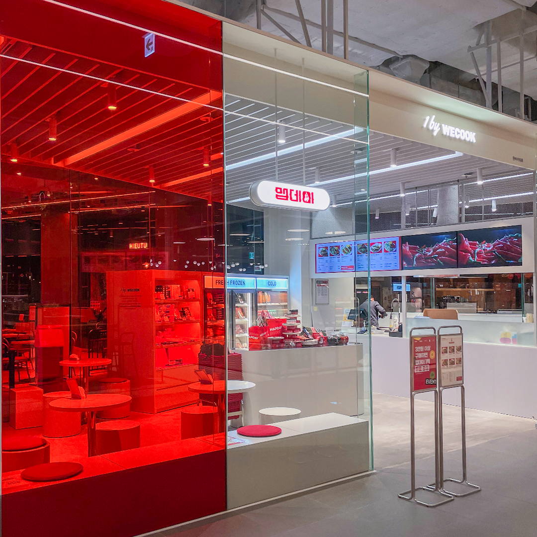 ‘맵데이’가 더현대 서울에? 강남에서 배달 맛집으로 유명한 ‘맵데이’를 지금 B1 ‘Tasty Seoul’에서 만날 수 있는데요. 좋은 콘텐츠를 가진 다양한 소규모 브랜드를 지원하고자 만들어진 실험적인 오프라인 팝업 공간인 ‘1 by WECOOK’의 첫 번째 주인공이 바로 이곳입니다. ‘1 by WECOOK’은 푸드 스타트업을 육성할 수 있는 상생모델임과 동시에, 온라인이 일상이 되어가는 시기에 오프라인에서만 느낄 수 있는 고객 경험과 체험을 강화한 공간인데요. 단순 상품 판매를 넘어 오직 하나의 스토리, 하나의 브랜드만을 온전히 경험하는 것에 초점을 맞추고 있다는 것이 특징입니다. 첫 번째로 찾아온 ‘맵데이’가 지금 입 안에 천불 나는 매운맛으로 맵덕들을 집결시키고 있는데요. 매운맛 하면 떠오르는 닭발, 막창, 불닭, 닭똥집 등을 타코 메뉴로 개발한 조합도 신(辛)박하죠?