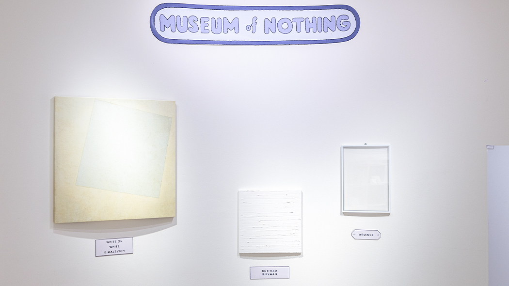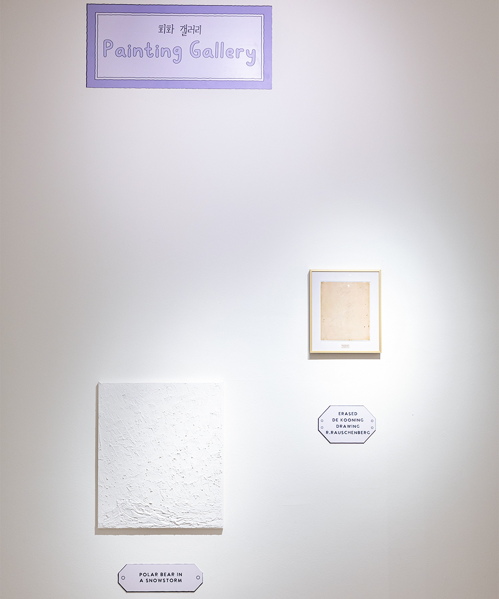<회화 갤러리>도 놓쳐선 안 돼요. 전시장 벽면 곳곳에 걸린 작품들은 서로 다른 방식으로 무(無)를 표현하고 있답니다. 그중에는 극도의 단순함을 추구하는 절대주의 화풍의 ‘흰색 위의 흰색’과 같이 미술사에 중요한 한 획을 그은 작품도 있답니다. 아무것도 아닌 것과 비어 있는 것들의 매력을 조명하는 스티븐 과르나차의 창의적인 아이디어들은 관람객들을 새로운 크리에이티브의 세계로 인도합니다.