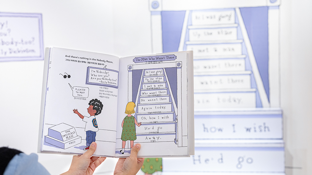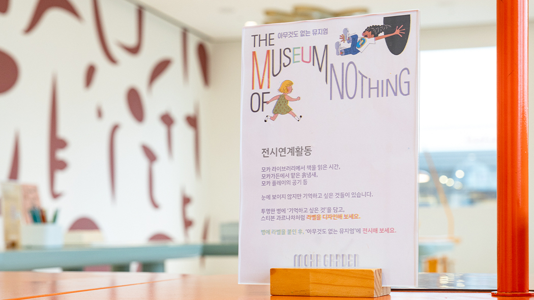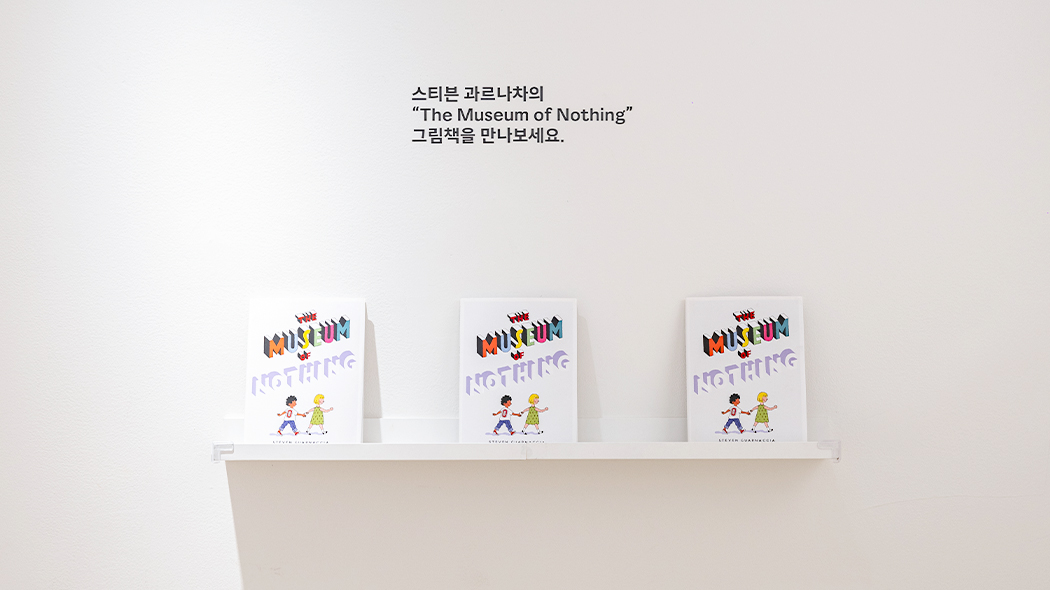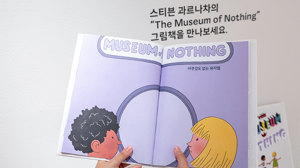 전시장 한쪽에 비치된 스티븐 과르나차의 책 『아무것도 없는 뮤지엄』과 공간을 비교하며 감상하는 것도 또 하나의 재미입니다. 책은 ‘우나'와 ‘오토'가 ‘아무것도 없는 뮤지엄'에 놀러 가는 이야기를 담고 있어요. MOKA 가든은 평면에 담긴 창의적인 이야기를 입체적인 실제 공간으로 구현하기 위해 큰 노력을 기울였답니다.