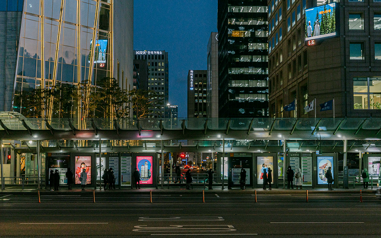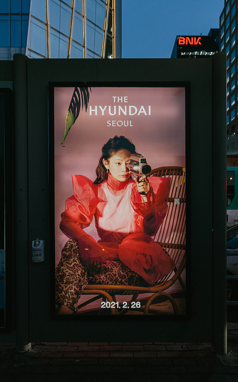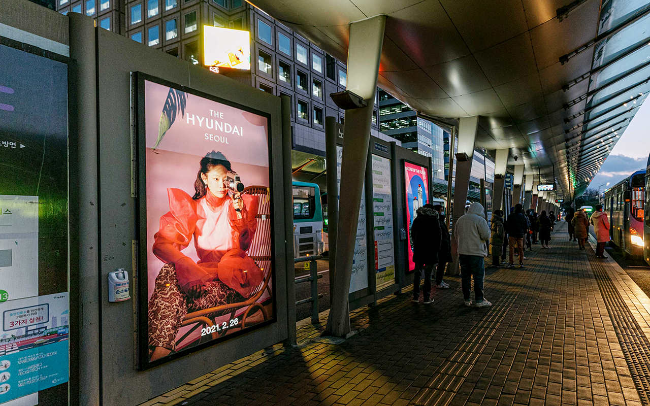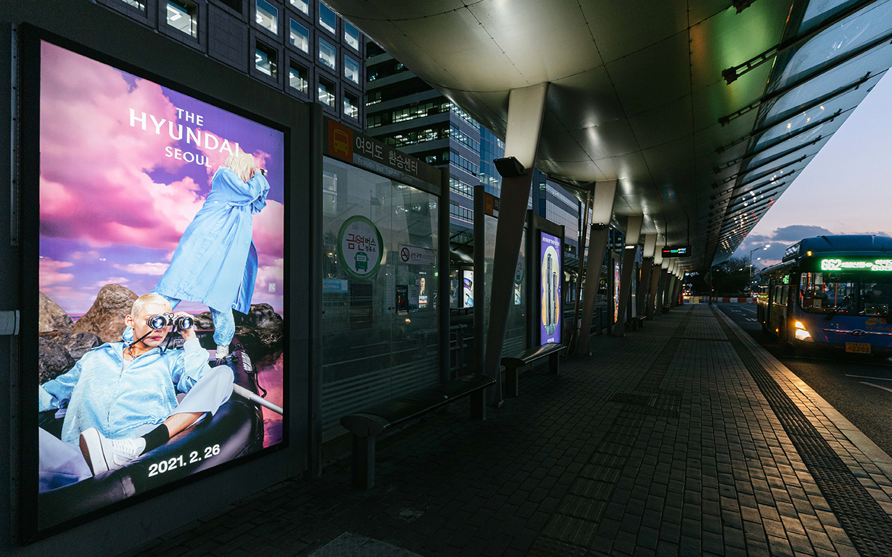 수많은 사람이 오가는 버스 정류장. 버스 쉘터로 불리는 이곳에서 사람들은 꽤 많은 시간을 보냅니다. 지나가는 차 안에서도, 버스를 기다리면서도, 타고 있는 버스가 멈추었을 때에도 다양한 광고를 볼 수 있죠? 하지만 <더현대 서울>을 담은 캐릭터와, 이미지로 만들어진 광고만큼 시선을 사로잡지는 못할 것 같아요.