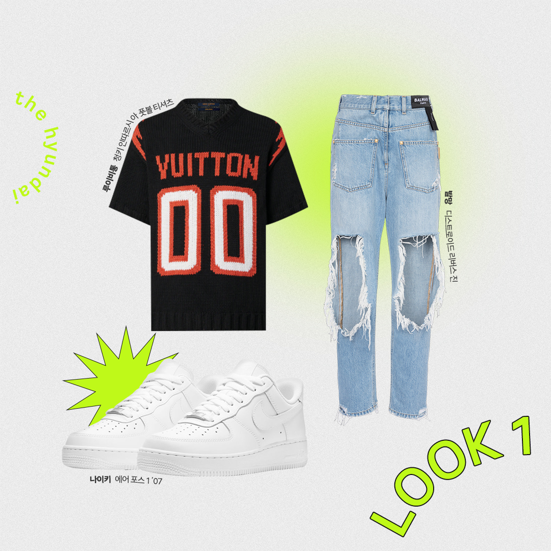 루이비통 ‘청키 인따르시아 풋볼 티셔츠’ 미식축구를 상징하는 스포티한 모티브가 가미된 루이비통의 티셔츠예요. 캐주얼한 디자인이지만 니트 소재로 만들어졌어요. 여기에 앞면과 뒷면을 장식하는 시그니처 로고가 은은한 고급스러움을 전합니다. 소맷단과 밑단에 들어간 독특한 리브드 디테일이 특징인 티셔츠! 가까운 곳을 가더라도 이 아이템과 함께하면 Y2K 무드가 한껏 살아날 거예요.