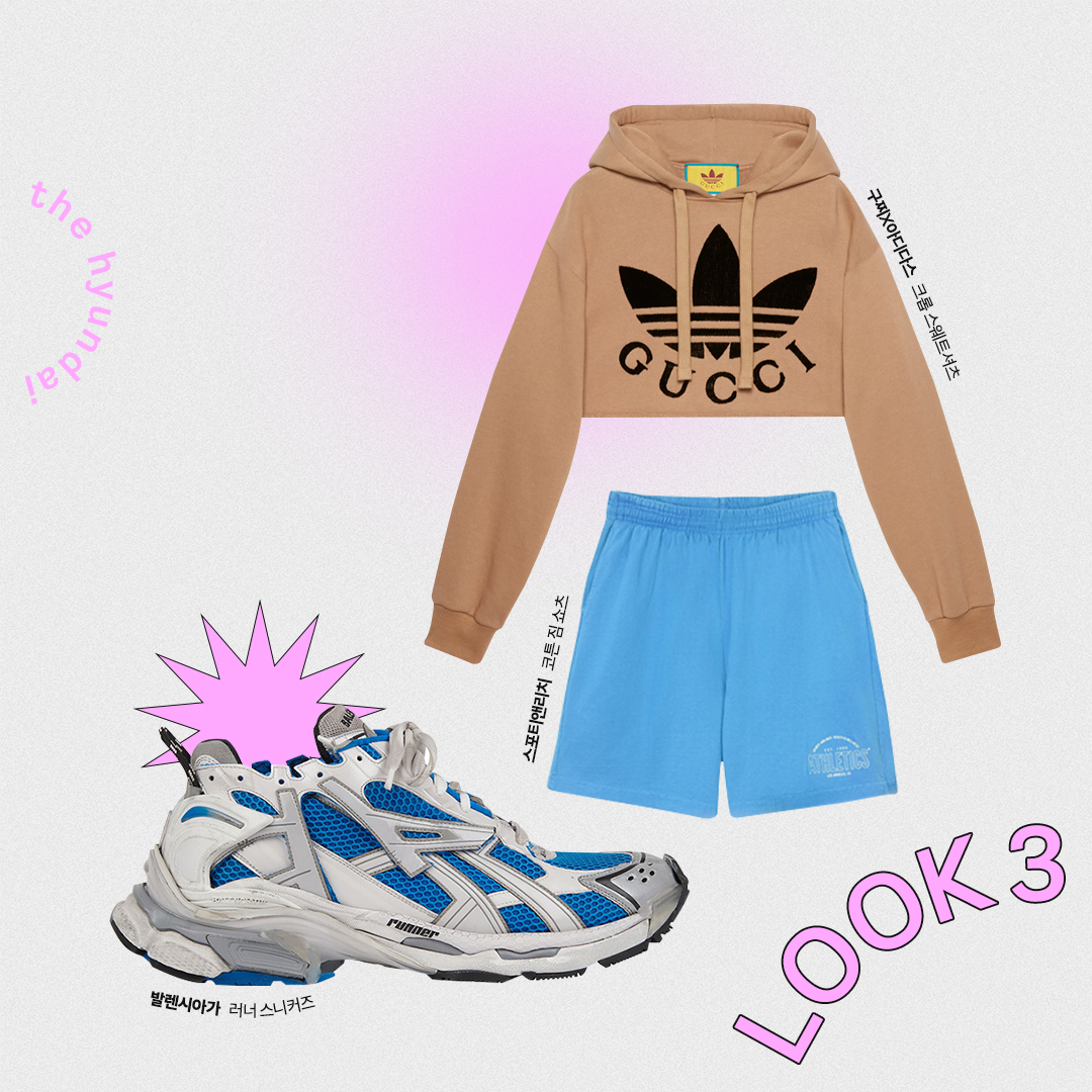 구찌X아디다스 ‘크롭 스웨트셔츠’ 이탈리아의 하이앤드 명품 브랜드와 독일 스포츠 브랜드의 만남! 아디다스와 구찌의 아카이브 엠블럼을 결합한 구찌 트레포일 자수가 눈에 띄는데요. 유서 깊은 스포츠 브랜드와 하우스의 상징적인 모티브가 묘하게 하나로 어우러지는 콜라보 스웻셔츠예요. 이 아이템은 크리에이티브 디렉터 알렉산드로 미켈레가 1980년대와 1990년대 기억에서 영감을 받아 만들었는데요. 향수를 불러일으킴과 동시에 현대적인 감성을 느낄 수 있습니다. 크롭 기장이라 Y2K룩 트렌드까지 갖춘 아이템이라고 할 수 있죠!
