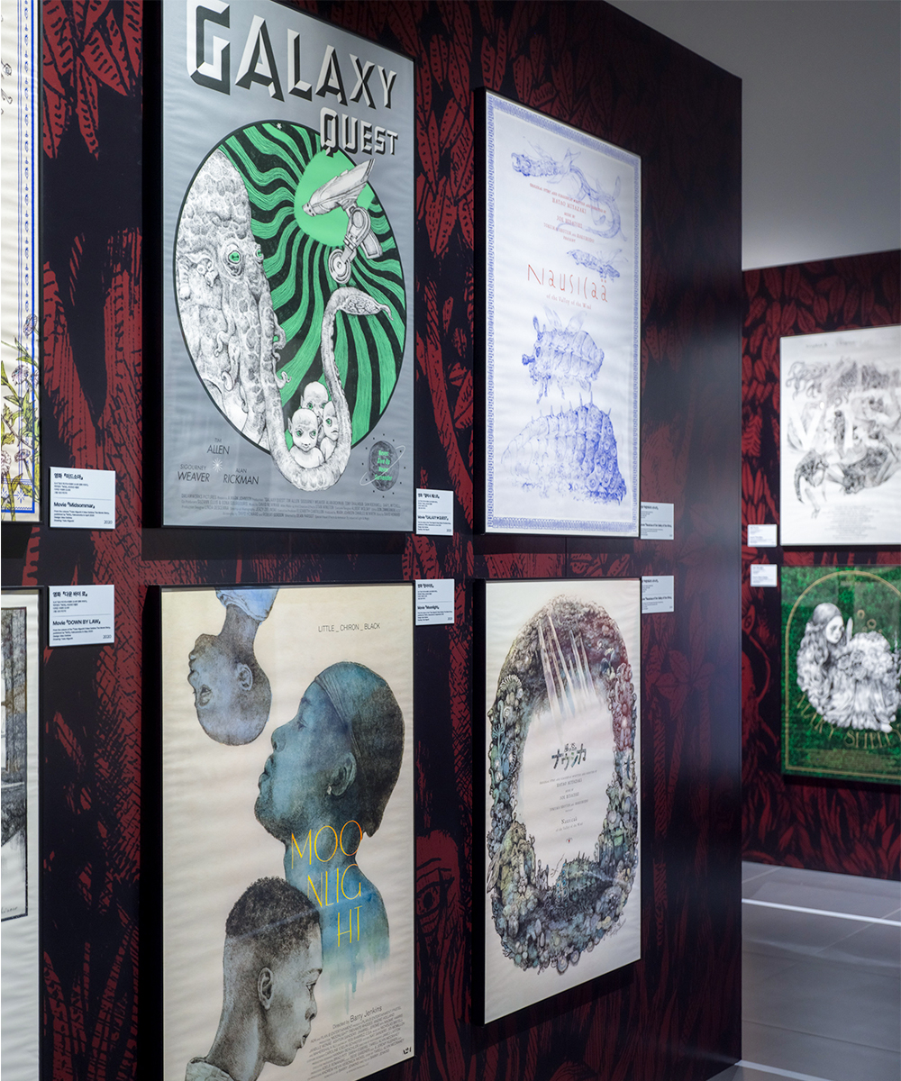 전시 공간 한쪽에서는 유코 히구치의 영화 취향도 엿볼 수 있습니다. 팬아트 문화가 발달한 일본 출신 아티스트답게 기존의 영화 포스터를 재해석한 작업물이 많은데요.
